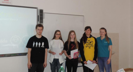 2. místo - tým Banány - Dvořákovo Gymnázium a SOŠ ekonomická (ve složení Michal Beneš, Petr Převrátil, Jakub Zeman)