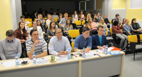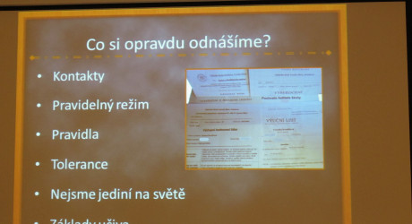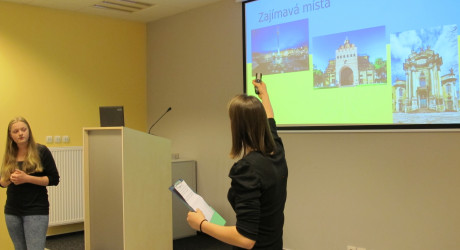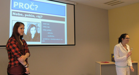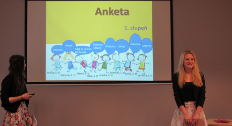 První blok prezentací začal v 8:30 a jako první před porotu nastoupil tým Jelita z OA, který si pro porotu připravil i vlastní dotazník, který stihl ještě během prezentace vyhodnotit a sdělit výsledky publiku. Jako druhý nastoupil tým Dlouhý, Široký a Bystrozraký, který se zaměřil na problémy s hledáním domova dětí v Africe. Dále svou prezentaci předvedl tým Denča a Pája, který nám zarecitoval i část ukrajinské hymny. Dále tým Aditus ad doctrinam, který každého pobavil svým podtématem nedostatkem hygienických potřeb ve škole. Návštěvníci zase razili heslo: Ve škole ber vše co můžeš! Vidlačky se lehce dotkly i ožehavého tématu domácího násilí.