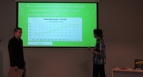 Po přestávce jako první svou prezentace přednesl tým Katja, který všem přítomným mimojiné popsal, jak funguje mozek jako přístroj pro učení do školy. Acoc Aloc zase porovnal úroveň vzdělávání u nás a Velké Británii. Allofok následně našel svůj domov v počítačových hrách. Následně Ti, co název nikomu neprozradili se zabývali problémem s bezdomovci a jako poslední nastoupil tým Liman, který hledal, jak vylepšit české školství.