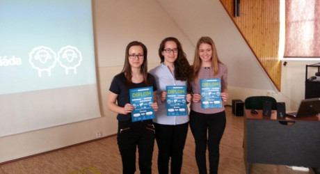 1. místo: F=m*a (Gymnázium sv. Tomáše Akvinského), ve složení: Lucia Ropeková, Martina Belišová, Laura Kubíková