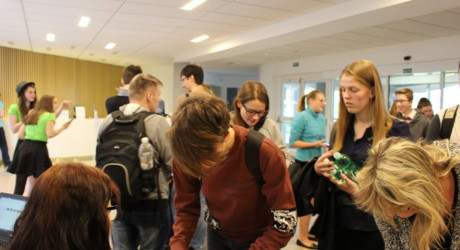 Už brzo ráno začaly plnit první týmy budovu ESF. Jako první se svého zahájení dočkaly středoškolské týmy, které čekal dvoudenní náročný program. V prvním dnu se soutěžící dozvěděli témata, na které v následujících deseti hodinách museli vymyslet prezentaci. “Vašimi tématy bude Moje první ne a Kvalita či kvantita,” řekla moderátorka a v sále to zašumělo. Pak už se všichni odebrali na svá pracovní místa a začali diskutovat a přemýšlet nad zadanými tématy.