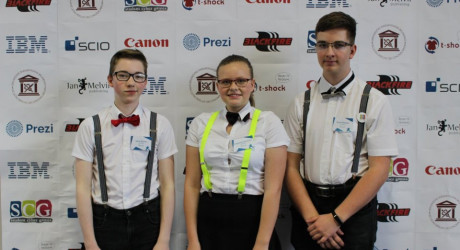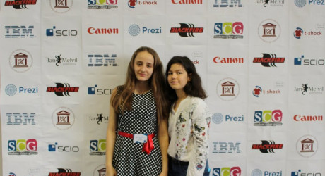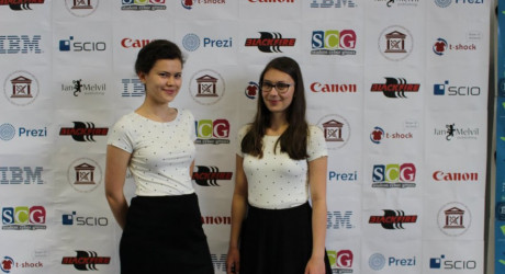 1. místo Techničky. LI (Gymnázium Mateja Hrebendu, Hnúšťa) ve složení: Ivana Kyseľová a Lea Romana Bálintová