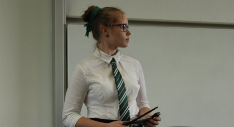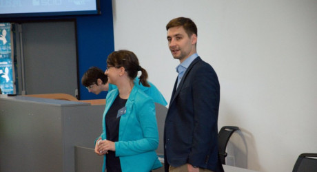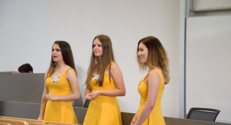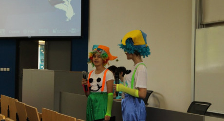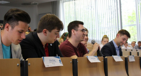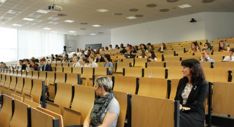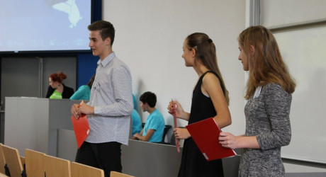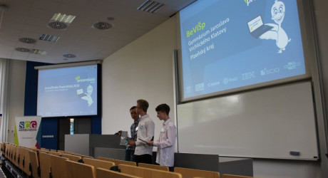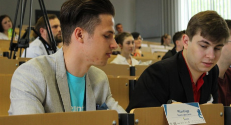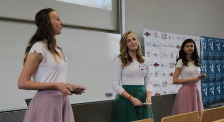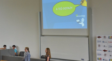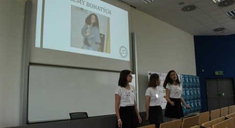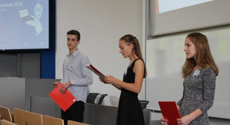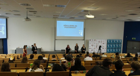 V deset hodin už byli všichni soutěžící ze základních škol připraveni na svých místech. Nervozita se dala krájet. Všichni čekali, na který tým padne Černý Petr a půjde prezentovat první. “Jako první bude prezentovat Želiezko,” řekl moderátor Jan Malíř a sálem to jen zahučelo. Jen děvčata z Košic nebyla nejšťastnější. Zatímco se připravovala, představili moderátoři hlavní partnery soutěže. “Moc se těším, na to, co dnes uslyšíme. Z předchozích ročníků máme zkušenost, že prezentace bývají velmi profesionálně zpracované. Někteří naši studenti by se od vás mohli učit,” přivítala soutěžící proděkanka ESF Dagmar Špalková a popřála studentům hodně štěstí. Právě Ekonomicko-správní fakulta MU je spolupořadatel soutěže.