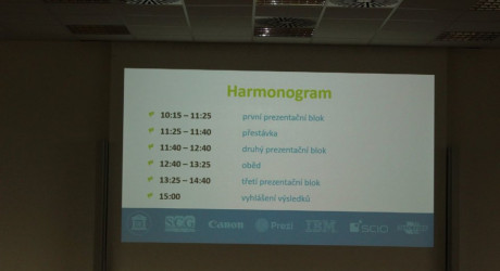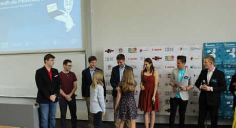 školitel prezentačních dovedností Lukáš Hrdlička. S ním v porotě usedl Filip Hampl a Vlastimil Reichel z ESF, firmu IBM zastupoval Vladimír Hruban a posledním porotcem byl hlavní koordinátor Prezentiády Milan Knapp.