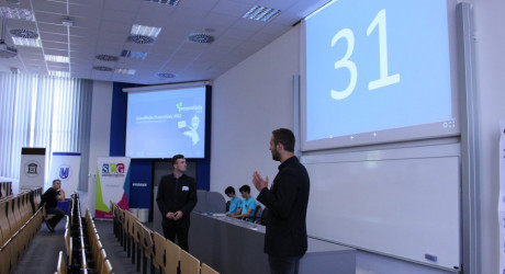 Chvíli před devátou hodinou Grandfinále začalo důležitým losováním, který tým představí svou prezentaci jako první. “Prvním nám svou prezentaci a video představí Salašníci,” řekl moderátor Jan Malíř a sedmnáct týmů si zhluboka oddechlo.