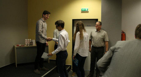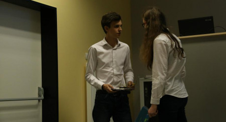Krajské kolo pro Pardubický kraj začalo v poklidné atmosféře v aule místního Gymnázia Mozartova. Po prezenci, při níž všichni přítomní obdrželi džusy i místní perníčky, soutěž začala.