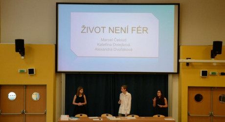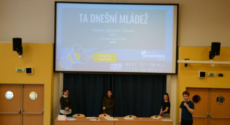 Následovalo něco co nikdo nečekal. Tým dvou slečen ze základní školy si zvolil téma “Ta dnešní mládež” pro střední školy, a tak musel soutěžit v kategorii středních škol. Samy si od toho moc neslibovaly, ale prezentace byla skvostná a byla radost se na ni dívat. V očích poroty překonaly kdejaké středoškoláky.
