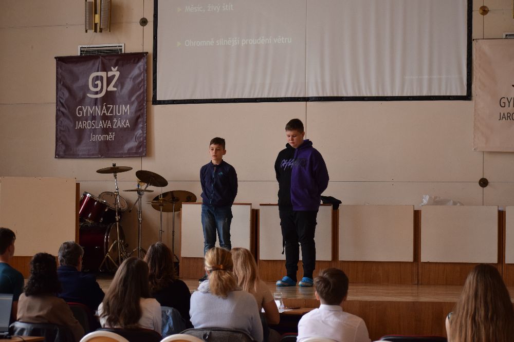 Na Gymnáziu Jaroslava Žáka v Jaroměři se 29. 3. sešli soutěžící v kategorii ZŠ na Krajském kole Královéhradeckého kraje. Na klání přijely 4 týmy a téma „Co by kdyby“ bylo jasným favoritem.