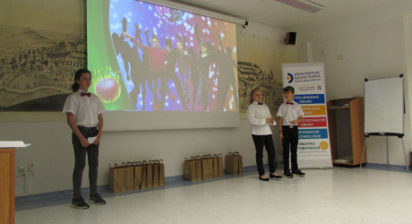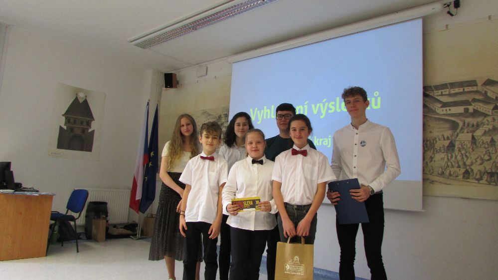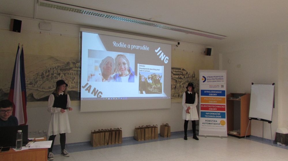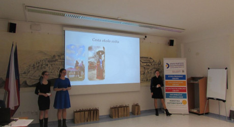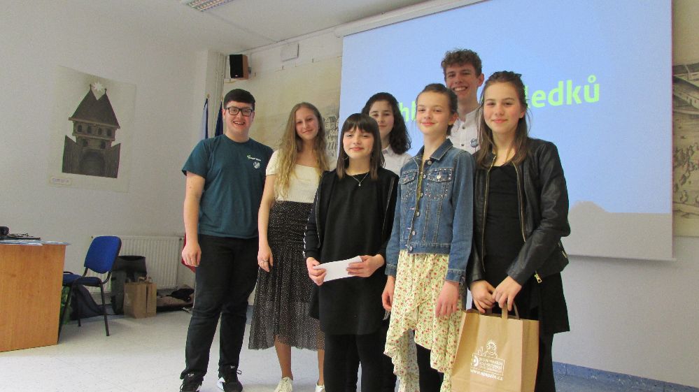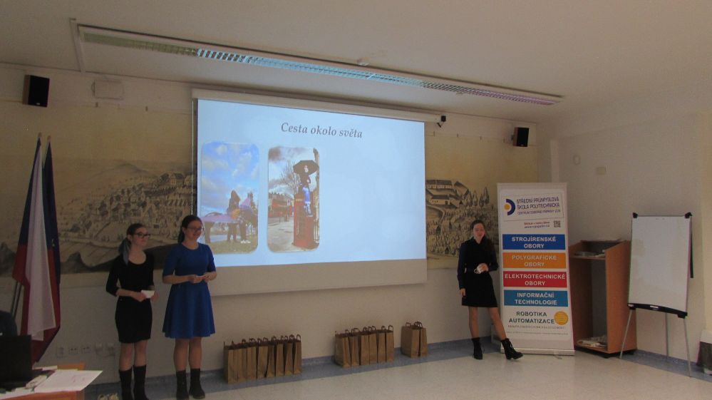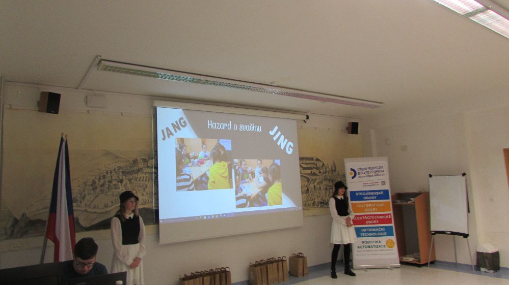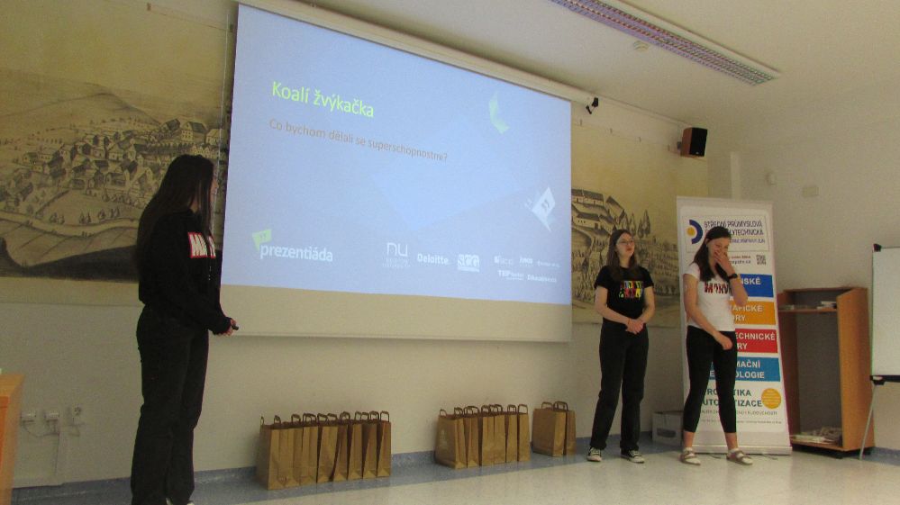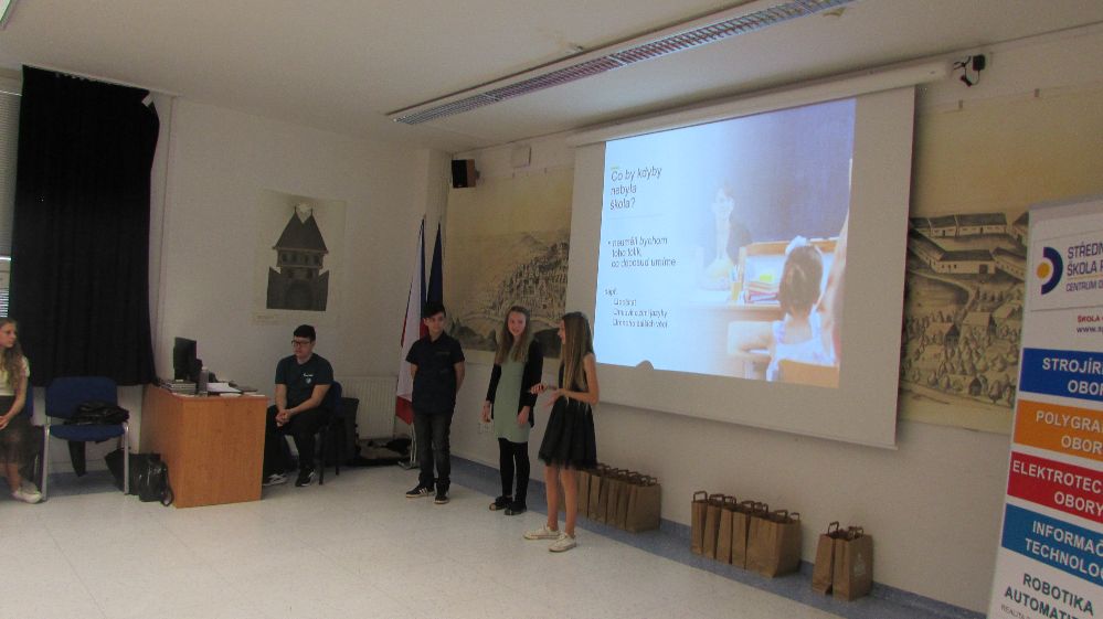 Ačkoliv byl tým MAKAJI na řadě jako první, oba jeho účastníci podali výborný výkon. Krásně rozvedené téma elektřiny nám vnuklo myšlenku, jaké by to asi bylo bez ní. Kluci Jirka a Mates prezentovali o jejich představě světa bez elektrické energie, což nám všem vyrazilo dech. Na kluky navázal tým složený ze samých děvčat s názvem Šesťácká trojka. Téma “Co řešíme o přestávkách?” pojaly po svém a představili nám jejich klasické aktivity, od chystání pomůcek, přes pletení vlasů, až po jejich oblíbenou přestávkovou hymnu.