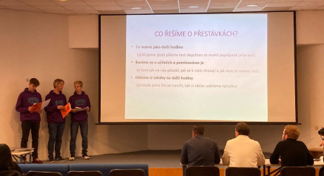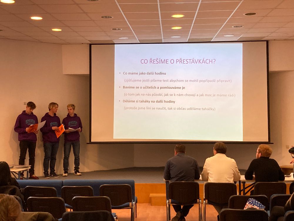 Další tým Zastávka z Gymnázia T. G. Masaryka Zastávka se zabýval problematikou konverzací o přestávkách. Šárka a Vítek, sourozenci z jiných tříd, nám představili, jak konkrétně u nich probíhají přestávky. Nejčastěji se prý během konverzací zabývají tématem souvislým se školou. Dále nám byly představeny nejoblíbenější aktivity jako přehrávání hudby, používání různých aplikací, jako jsou hry, sociální sítě, nebo dokonce i výukové aplikace, ale oblíbenou aktivitou je i konzumace různých pochutin. Jejich seznámení o aktivitách bylo pozoruhodné.
