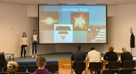 Předposlední byl tým Duo Zlomtrdlo ze základní školy Tyršova ze Slavkova u Brna. Terka a Denča se zaměřily na vesmír, jelikož je to pro ně velké a zajímavé téma. Jejich prezentace se zaměřila na téma „Co by kdyby nebyl Velký třesk“. Myšlenka toho, že bychom neexistovali, je poměrně hluboké téma, na které si musíme vymyslet názor sami. Holky nám představily různé pohledy a konspirační teorie života ve vesmíru. Hlavní myšlenkou jejich prezentace bylo zamyšlení se nad vesmírem a neznámem, které tam na nás čeká.