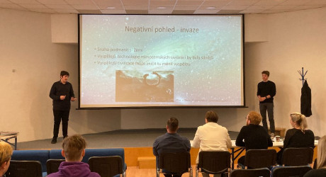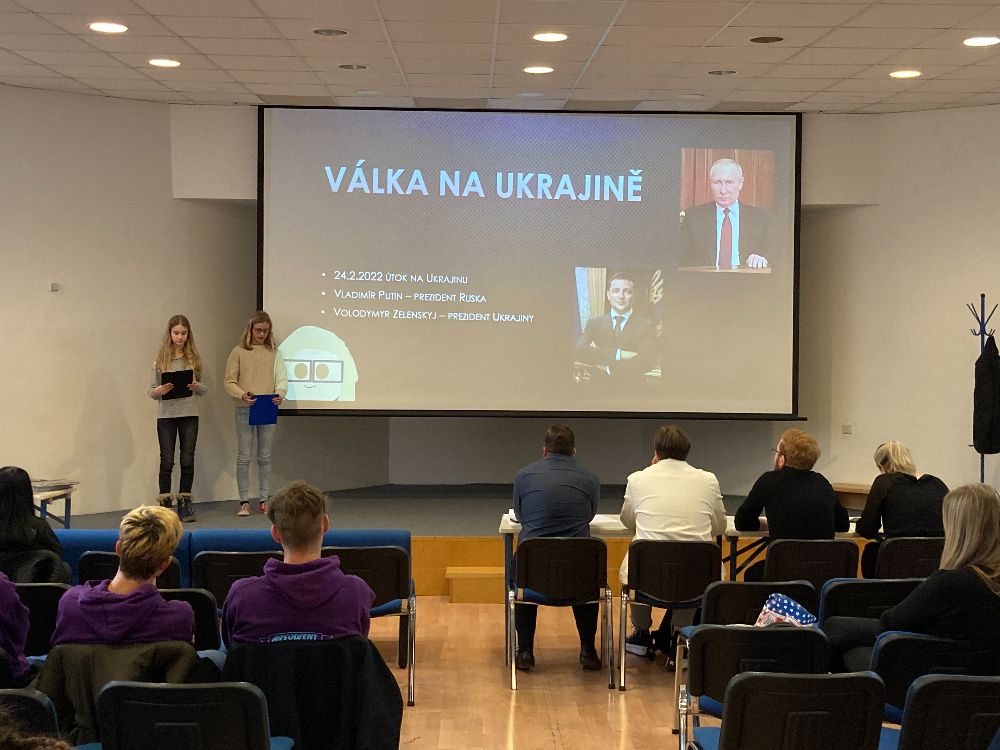 Dalšími odvážlivci byla děvčata Vanesa, Beáta a Nikola z týmu Chabřice ze základní školy v Rousínově. Jejich prezentace byla na podobné téma jako prezentace prvních představitelů – „Co by kdyby se válka na Ukrajině zhoršila“. V úvodu nám děvčata podala obecné informace o obou státech ve válce a dopady této tragédie. Zajímavé byly hypotézy dopadu tohoto konfliktu ve světě. Cílem prezentace bylo upozornit na nepříliš vhodné řešení konfliktu v podobě války a vojenského tažení.