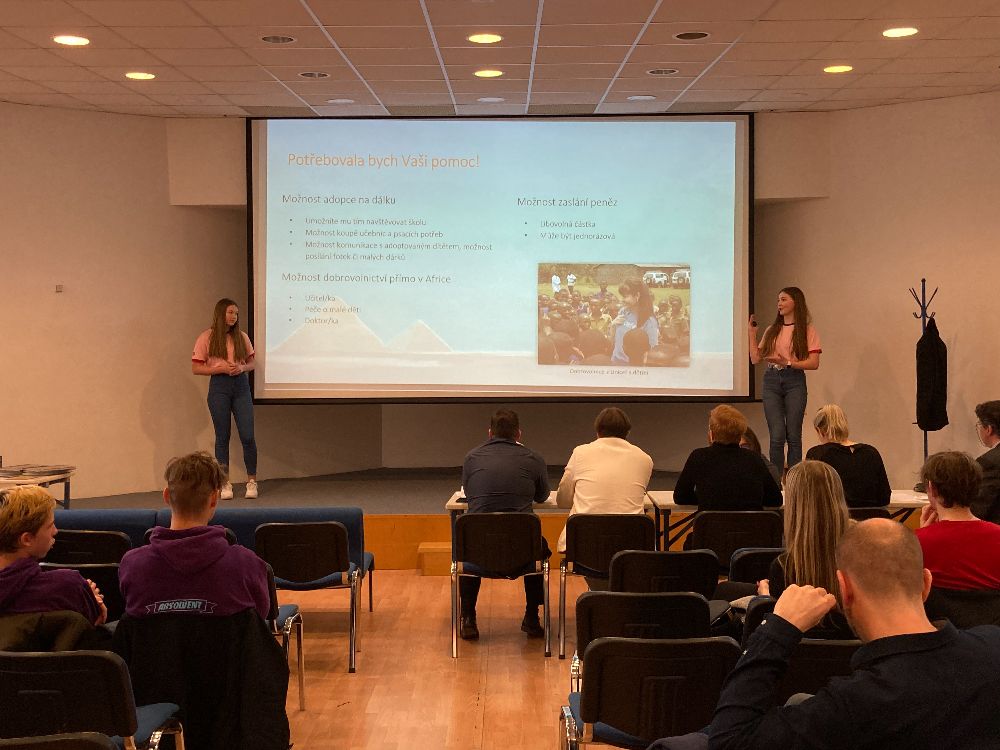 Objevitelky Antonína a Anna ze základní školy Bakalovo nábřeží v Brně si připravily prezentaci „Co by kdyby se narodily v Africe“. Hned na začátku jsme se dozvěděli, že tento kontinent je poměrně odlišný oproti našem poměrům a zvykům. Hospodářské, ekonomické i sociální problémy tu jsou každodenní záležitostí. Šance na přežití jsou zde malé, každý 3. člověk zde trpí hlady a lidé zde nedosahují ani na finanční minimum. Závěrem nám bylo představeno několik možností, jak pomoci této oblasti, jako je třeba adopce na dálku, finanční kompenzace nebo dobrovolnictví. Hlavní myšlenkou tedy bylo, jak moc místo narození ovlivňuje celý náš život.