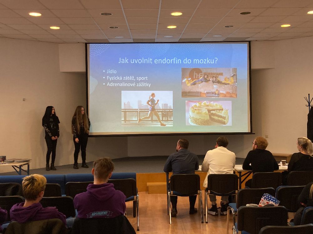 Tým s názvem Libracorn, tedy spojení znamení zvěrokruhu Libra a Capricon, z Gymnázia v Břeclavi, si připravil prezentaci „Co by kdyby lidé byli bez endorfinu tedy bez hormonu štěstí“. V úvodu jsme se dozvěděli, co vlastně endorfin způsobuje a proč je pro nás důležitý. V podstatě jsme na něm závislí a působí pro nás jako droga. Pokud bychom tuto „drogu“ neměli, mohly by u nás nastat úzkostné stavy, deprese, citlivost nebo zvýšení kriminality či užívání syntetických látek. Julča s Eliškou chtěli hlavně poukázat na to, jak by většina lidí bez endorfinu život brzo vzdala.