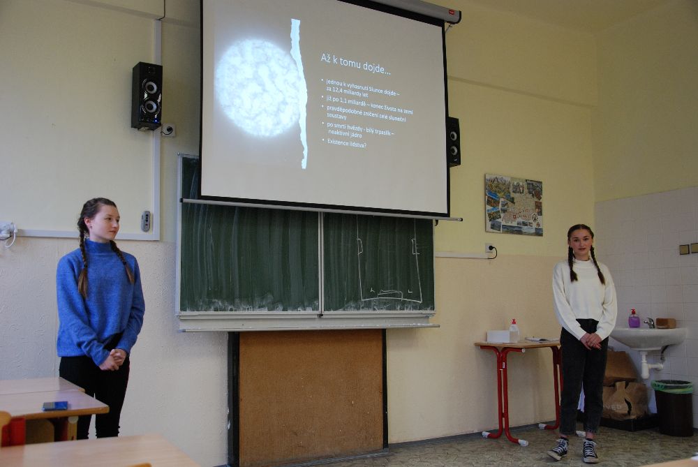 Prezentace byly pojaty dosti odborně. Nejdříve jsme se dozvěděli, co si děvčata z týmu Agapé myslí, že by se stalo, kdyby nebyla láska a také s námi prošla stručnou historii lásky ve světě (od Shakespeara po Eduarda VIII.). S týmem Chábroptéry jsme rozebírali, co by kdyby vyhaslo Slunce. Dostali jsme se až do podrobného rozboru potenciálního děje v průběhu následujících let.