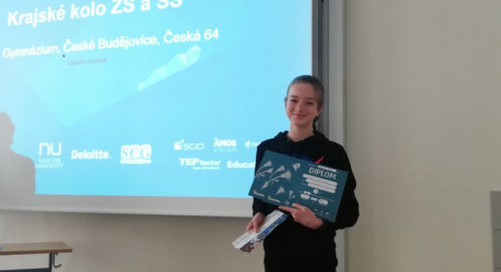 2. místo tým KaKi (Gymnázium Česká, České Budějovice) ve složení: Kristýna Koptíková, Karolína Slabová