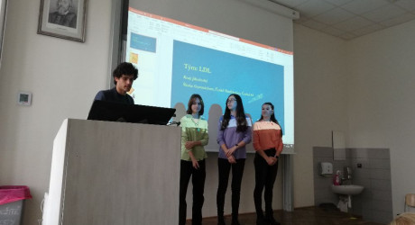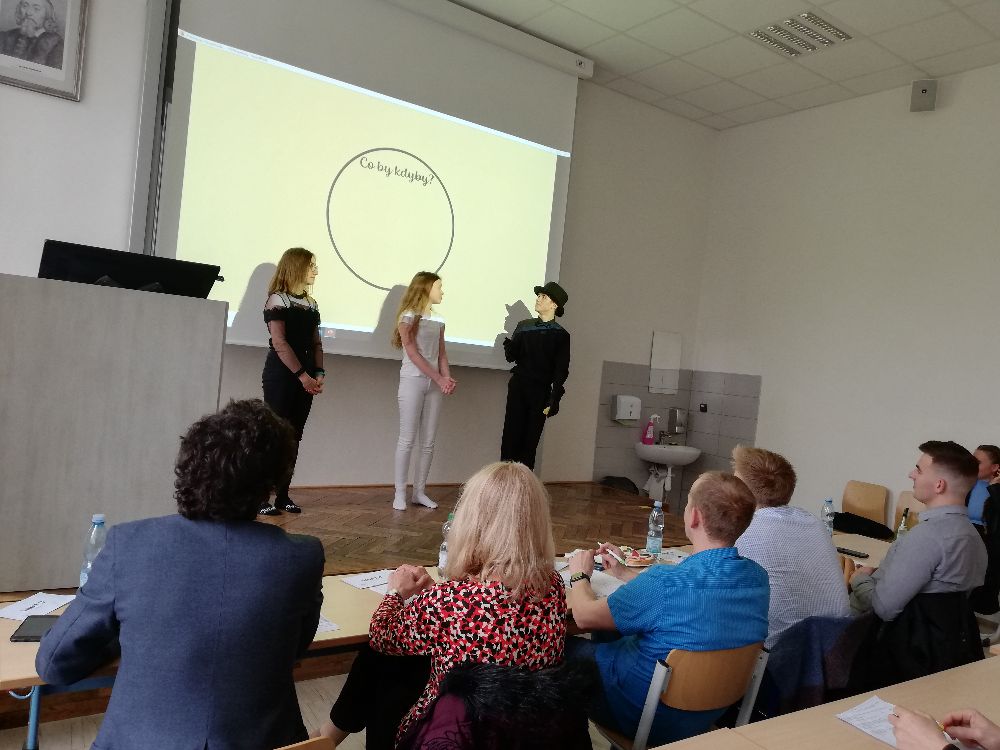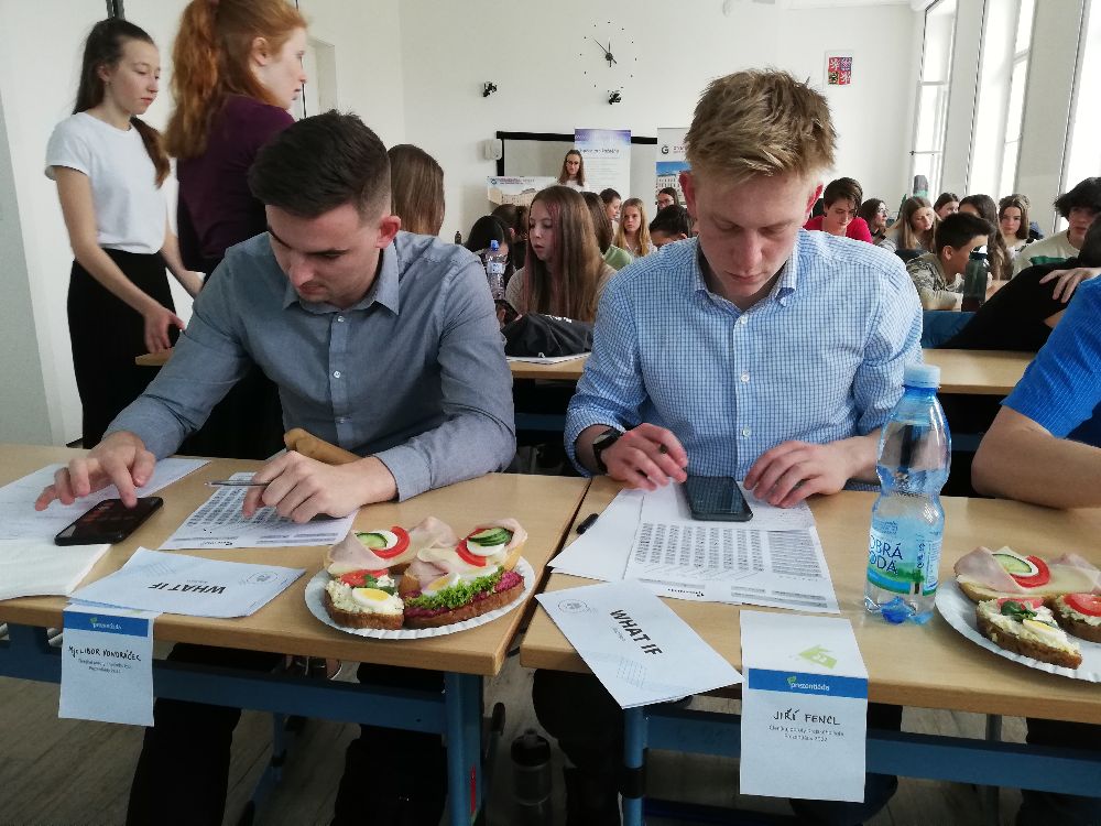 Po krátké pauze se prezentování ujal tým Osmičky🎱 z Gymnázia Jírovcova v Českých Budějovicích. Jeho členové Anna, Eliška a Vojta svou poutavou prezentací na téma „Co by kdyby“ osvětlili důležitost brambor v našich životech.