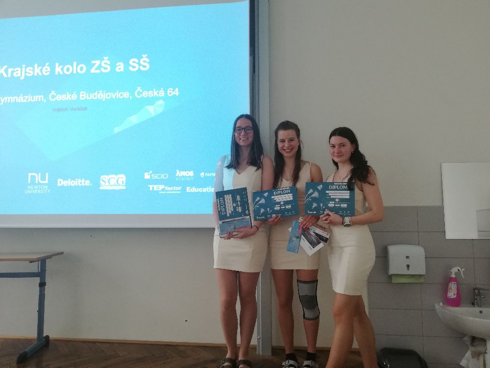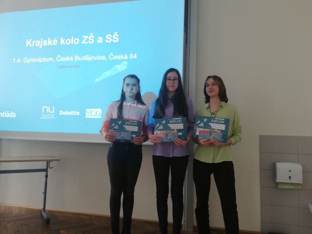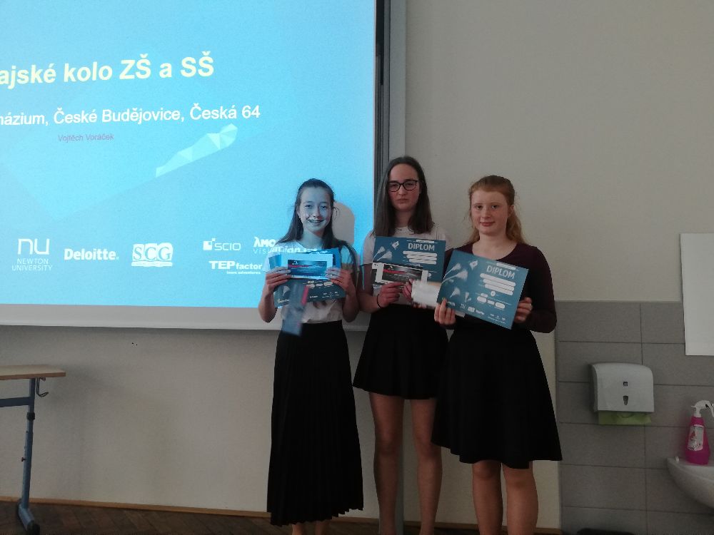 3. místo Osmičky 🎱 (Gymnázium Jírovcova, České Budějovice) ve složení: Vojtěch Švojgr, Anna Barešová, Eliška Řezníčková