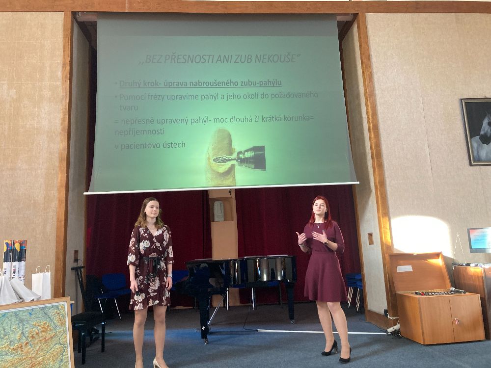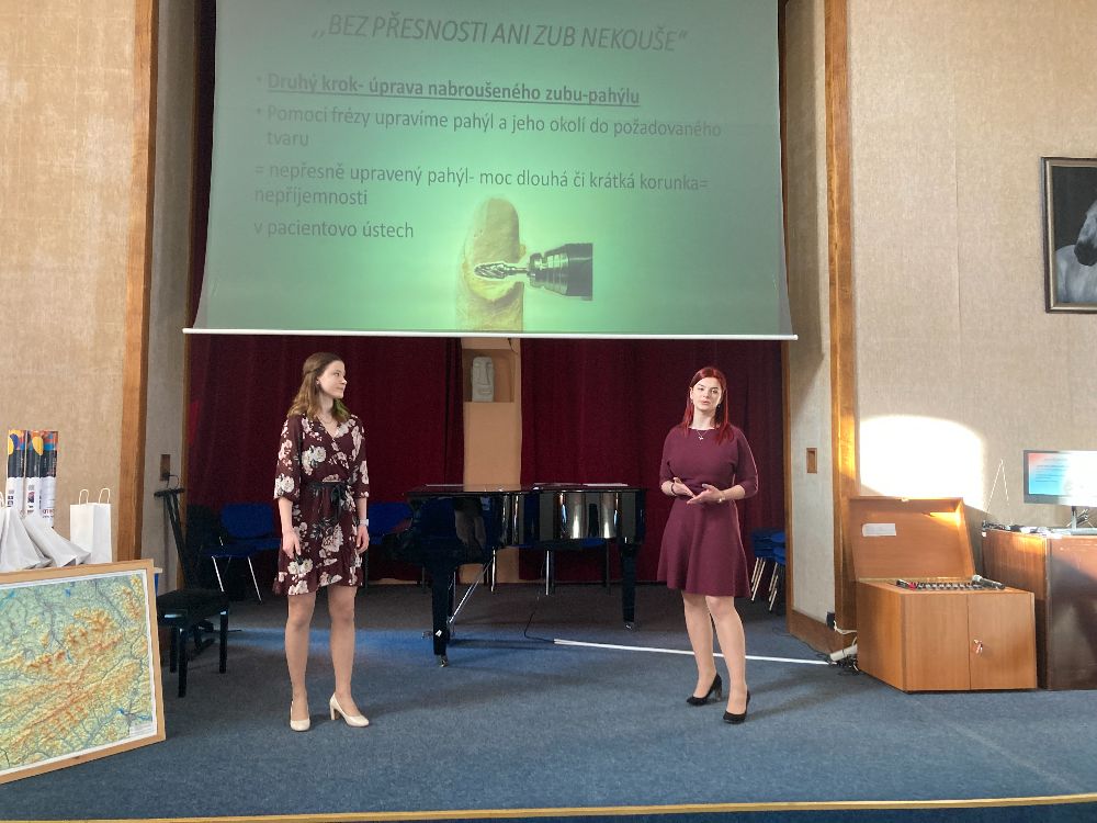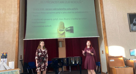 Druhá pondělní prezentace od týmu Zdrávka007 nabrala trochu jiný spád. Děvčata si zvolila téma „11. přikázání“ a stejně jako předchozí tým, vycházeli ze svých vlastních zkušeností. Podrobně nám tedy tým vysvětlil, jak se modeluje zubní korunka. Jedenácté přikázání totiž podle nich zní: „Bez přesnosti ani zub nekouše.“ Přesnost, totiž potřebujeme v každodenní životě.