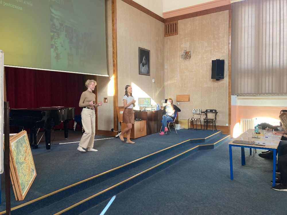 Posledním vystupujícím týmem byli KaZuKa z Tachova. Velmi energická prezentace nadchla porotu i publikum, protože situace popsané v prezentaci byly všem dobře známé. Jak by holky učily? Zrušily by nepříjemné zkoušení u tabule před třídou, nechaly by volný zasedací pořádek a povolily by elektroniku. U všech rozhodnutí přitom vycházely z průzkumu, který dělaly mezi svými spolužáky.