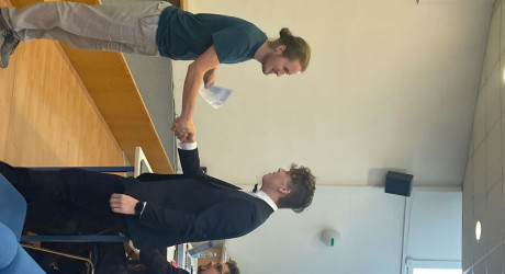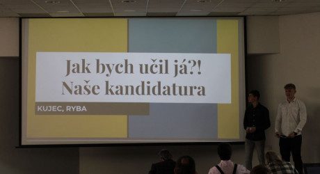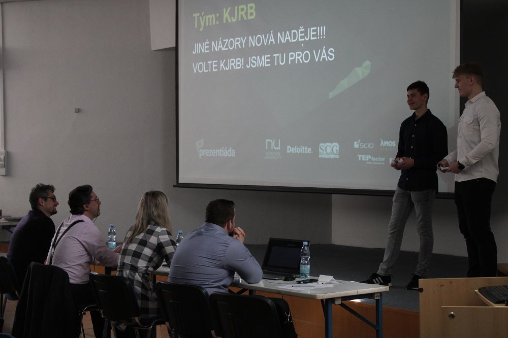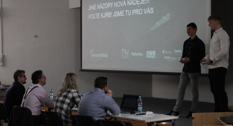 Dvoučlenná politická strana KJRB z Hodonína prezentovala jako třetí. Jejich téma? Jak by zlepšili školství, kdyby je voliči zvolili a dostali by tu možnost. Nezdráhali se kritizovat současný stav a opřeli se (i osobně) do personálního složení ministerstva školství. Ve svém programu by se strana KJRB zaměřila na výuku práce s moderními technologiemi, která momentálně zaostává. Chtěli by do škol nakoupit 3D tiskárny, brýle s virtuální realitou, nebo ultrarychlé routery. To vše by zařídila firma zvolená jejich nestrannou komisí *mrk mrk*. Dalšími opatřeními by bylo posunutí začátku vyučování na pozdější hodinu a podpora sportu s důrazem na volbu – studenti by si podle KJRB měli vybrat, jakým sportem budou čas trávit. Kluci svou prezentaci zakončili mottem: „Kdo volí KJRB, volí naději“.