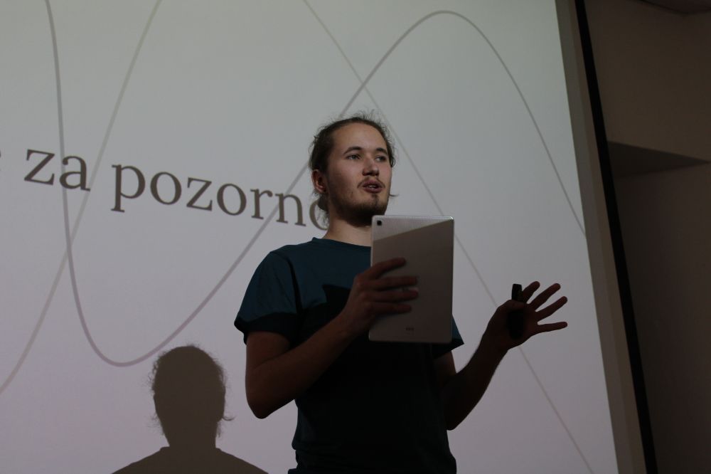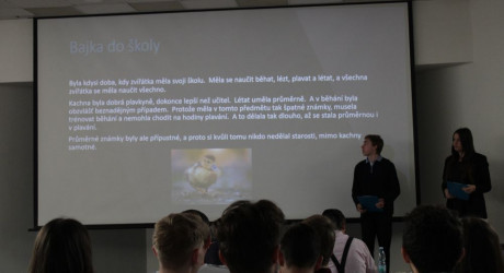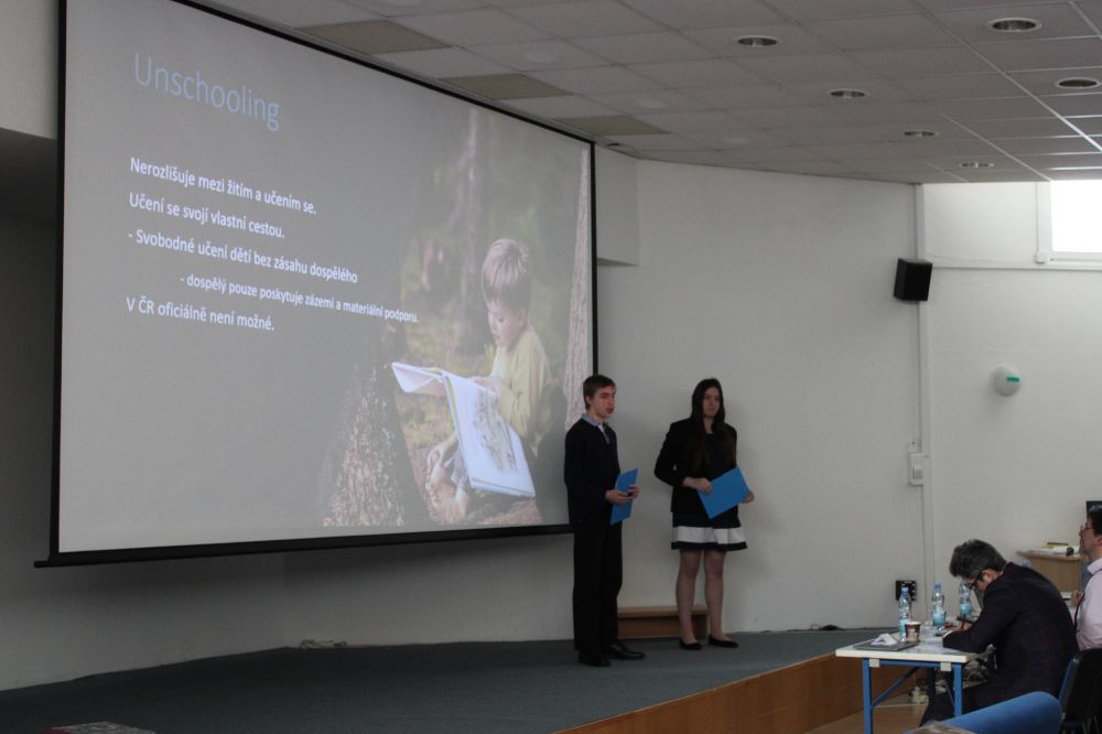 „Když dáte do školy a pokusíte se srovnat orla, kachnu, králíka a úhoře v jejich schopnosti plavat, létat, běhat a lézt, dostanete: úzkostnou kachnu, která ještě k tomu není dobrá plavkyně, zhrouceného králíka, demotivovaného orla a průměrného úhoře, kterého mají všichni učitelé rádi.“ Tímto příběhem uvedl svou prezentaci tým Proti proudu. Jak už bajka napovídá, zabývali se ve své prezentaci tématem alternativních škol a způsobů výuky. Ty totiž vycházejí právě z předpokladu, že každý z nás má jedinečné přednosti a ty je potřeba s respektem rozvíjet. Dozvěděli jsme se tak bližší informace o systému Montessori škol, domácím vyučování, unschoolingu a o svobodných školách. Velkou část prezentace publikum poslouchalo o zkušenostech prezentujícího Radmila, který strávil celých devět let základky vyučováním doma. Informace tak byly opravdu z první ruky.