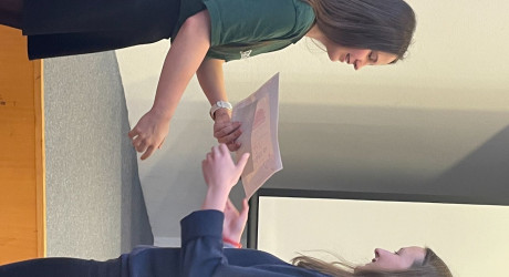 Tým Karyatides se zabýval motivem vzoru. Učitel jako vzor má podstatný dopad na studenty. Učitelé mají ve své moci, jestli nás jejich předmět bude bavit. A tak můžou i nadané žáky dusit, nebo naopak ty nezaujaté obrazně „zapálit“. K tomu je ale, jak trefně poukázali na citát klasika, nutné sám hořet. A učitelé bývají bohužel spíš strašáky než inspirací. Naši učitelé by se podle nich měli inspirovat v antickém Řecku. To dalo světu řadu myslitelů, vědců, učenců a skvělých učitelů. Vždyť všechny univerzity světa doteď vycházejí z Platónovy Akademie. Sami členové týmu Karyatides by se raději inspirovali u samotných řeckých bohů – a to především u Pallas Athény.
