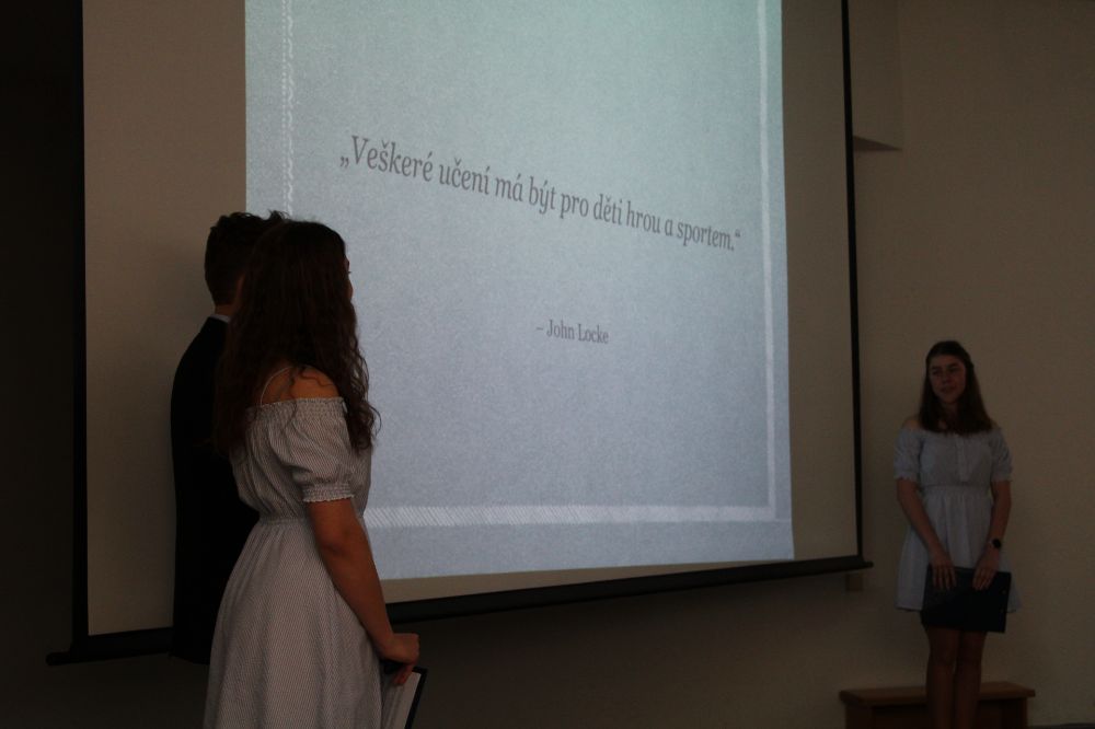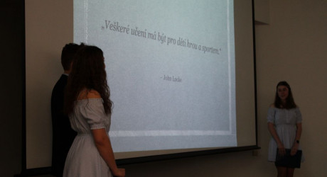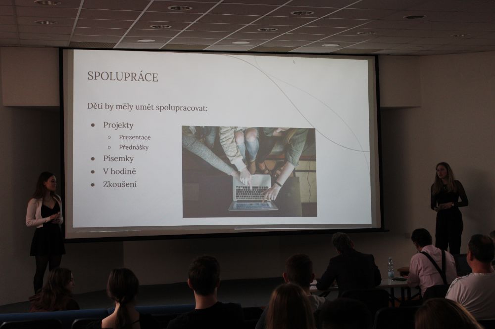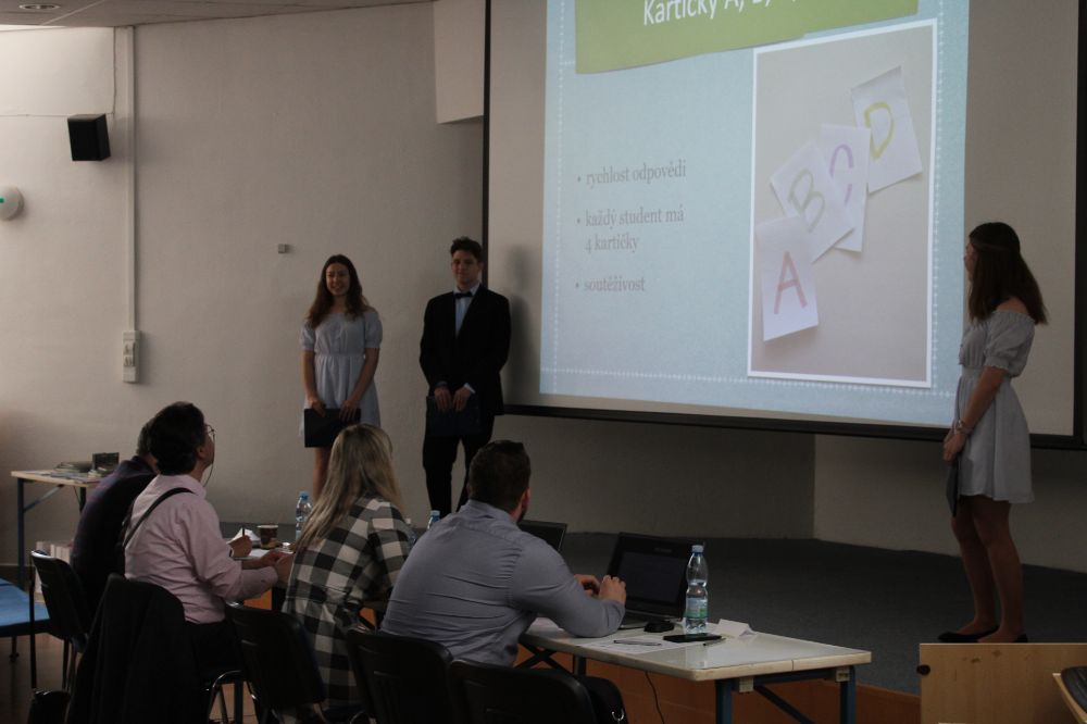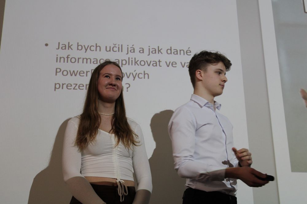 Tým Gymbuc elita se zabýval problematikou užívání prezentací ve školách. Většina učitelů je sice využívá, ale umí tuto technologii využít opravdu efektivně? Jako první se prezentující zaměřili na magické číslo 7. To je podle kognitivních psychologů počet prvků, které jsme schopní udržet v jednu chvíli v paměti. A jaký je průměrný počet slov na výukovém slajdu? Čtyřicet. Přitom obrázky dokážou komunikovat často velmi složité myšlenky poměrně jednoduchým a přístupným způsobem. Není tak divu, že prezentace využívající obrázky si pamatujeme více než šestkrát lépe než ty bez obrázků. Významným tématem prezentace byla takzvaná smrt Powerpointem. Co to znamená? Přeplácané slajdy obsahující kvantum informací, ve kterém se nedá vyznat, a k tomu ještě nepoutavý výklad, který je v podstatě jen čtením slajdů nahlas. Fuj. Takže jednoduše – obrázky, míň textu, víc mluvit!
