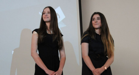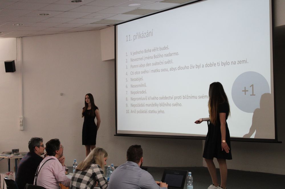 V předposlední prezentaci představily Slečny ze Štatlu publiku svou verzi jedenáctého přikázání: „Vzdělávat se budeš“. Na úvod připomněly původní desatero, kdyby ho někdo neznal, podle kterého by se lidé měli řídit, aby žili dobrý život. Ale. Nechybí nám tam náhodou něco o učení? Lidé se vzdělávají už od narození. Od prvotního zkoumání světa postupně procházím mateřskou a základní školou, většina pak i střední a vysokou. Ale školou to nekončí. Učíme se zkrátka celý život. A abychom se mohli učit efektivně, je potřeba vědět, kde se nám učí nejlíp. Děvčata preferují své pokoje, kde mají klid. Ale jsou schopné se učit také v knihovně nebo se svými kamarády. Učení bychom ale neměli věnovat všechen svůj volný čas, důležité jsou přestávky, dostatek spánku i různé koníčky. Školou bychom se podle jejich názoru neměli příliš stresovat, známky opravdu nejsou to nejdůležitější.