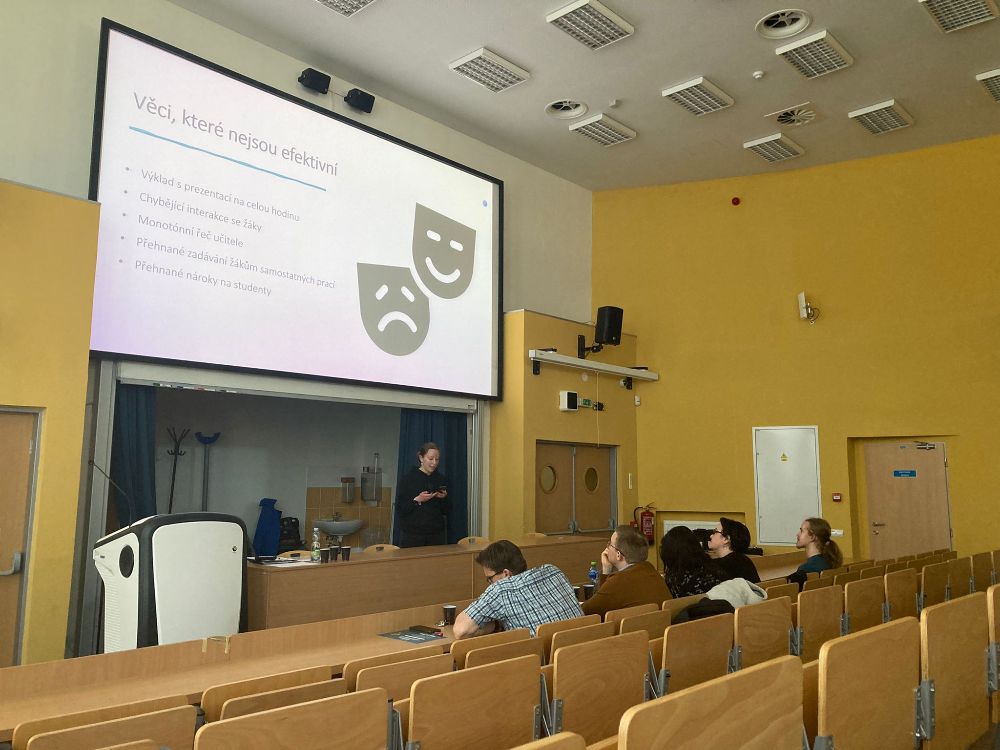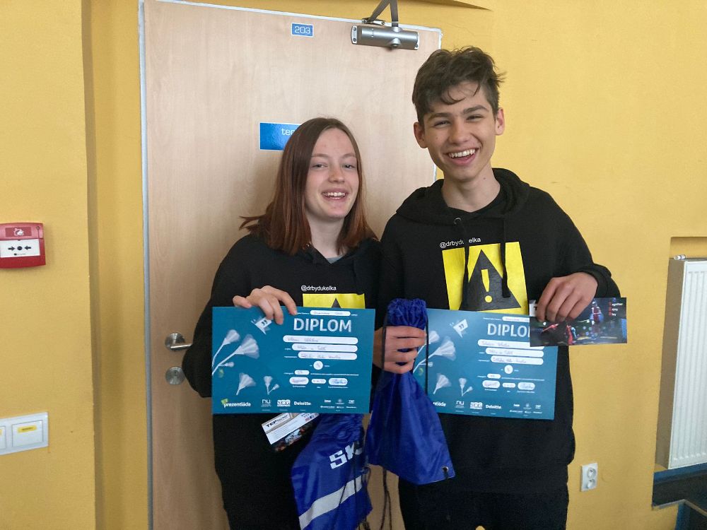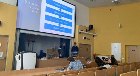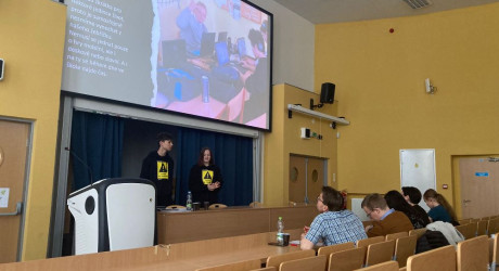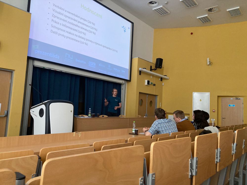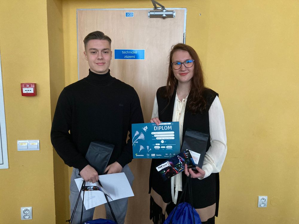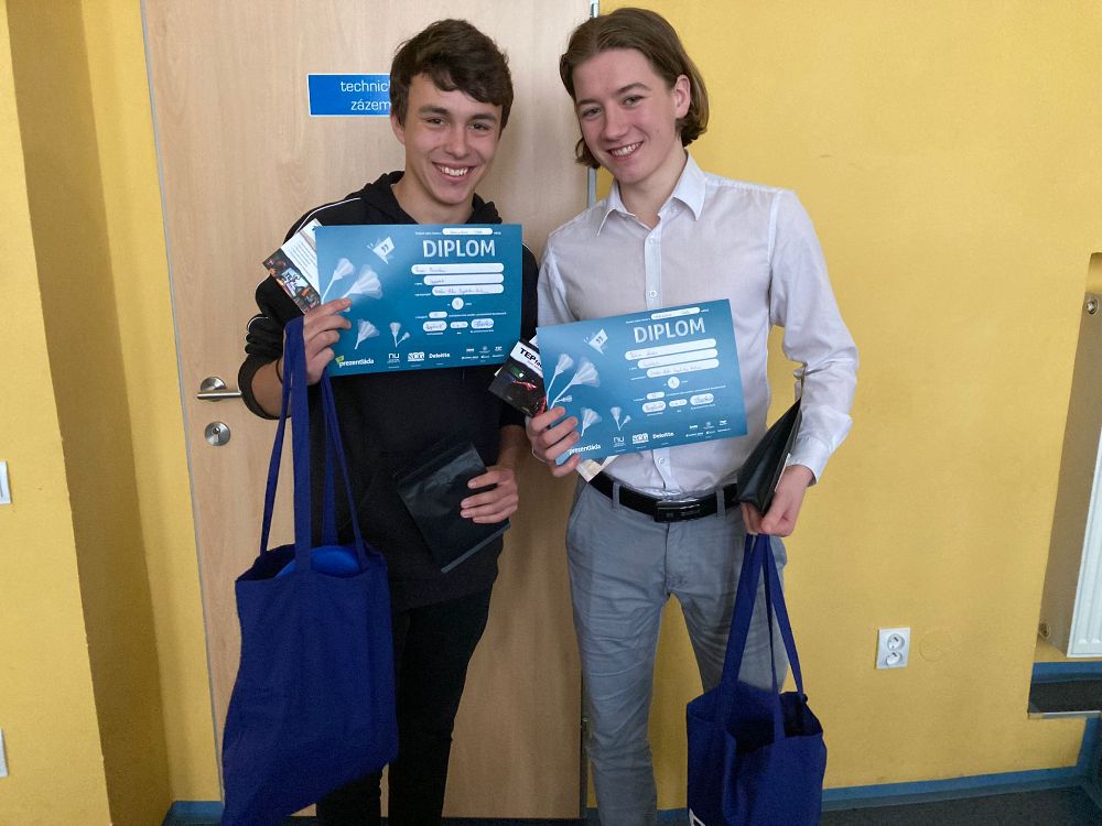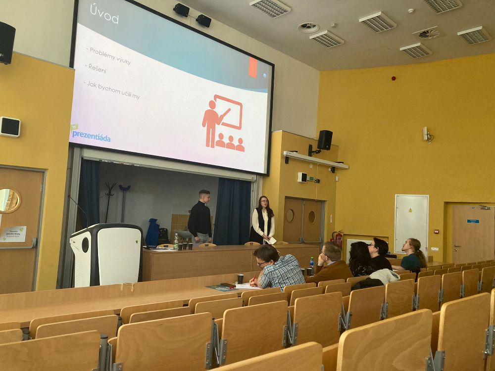 Atmosféru odlehčil tým z Kraslic Vikča a Tobík. Ve své prezentaci nám prozradili, čím tráví své přestávky. K překvapení vůbec nikoho byla většina aktivit v rozporu se školním řádem. Oba členové týmu nás ale ujistili, že se žádných takových aktivit sami rozhodně neúčastní.