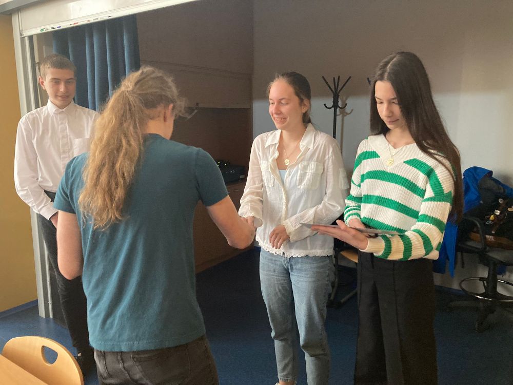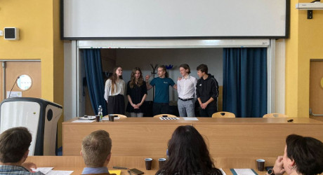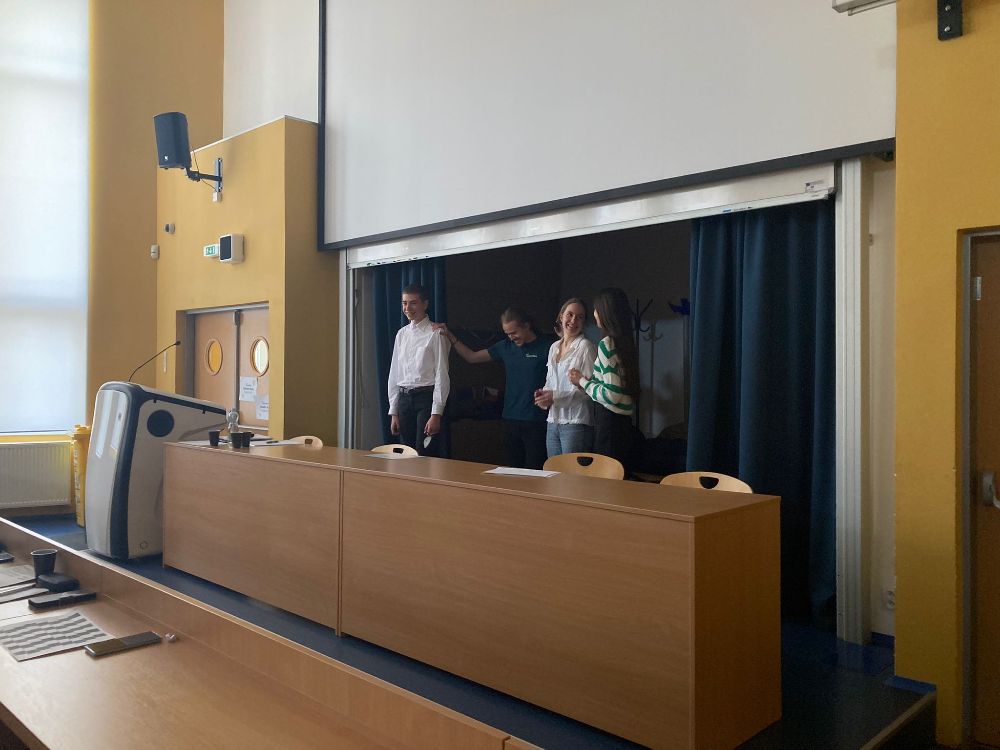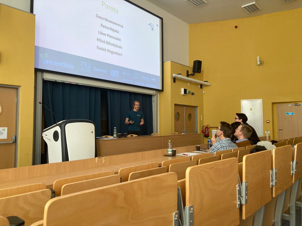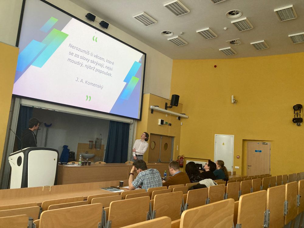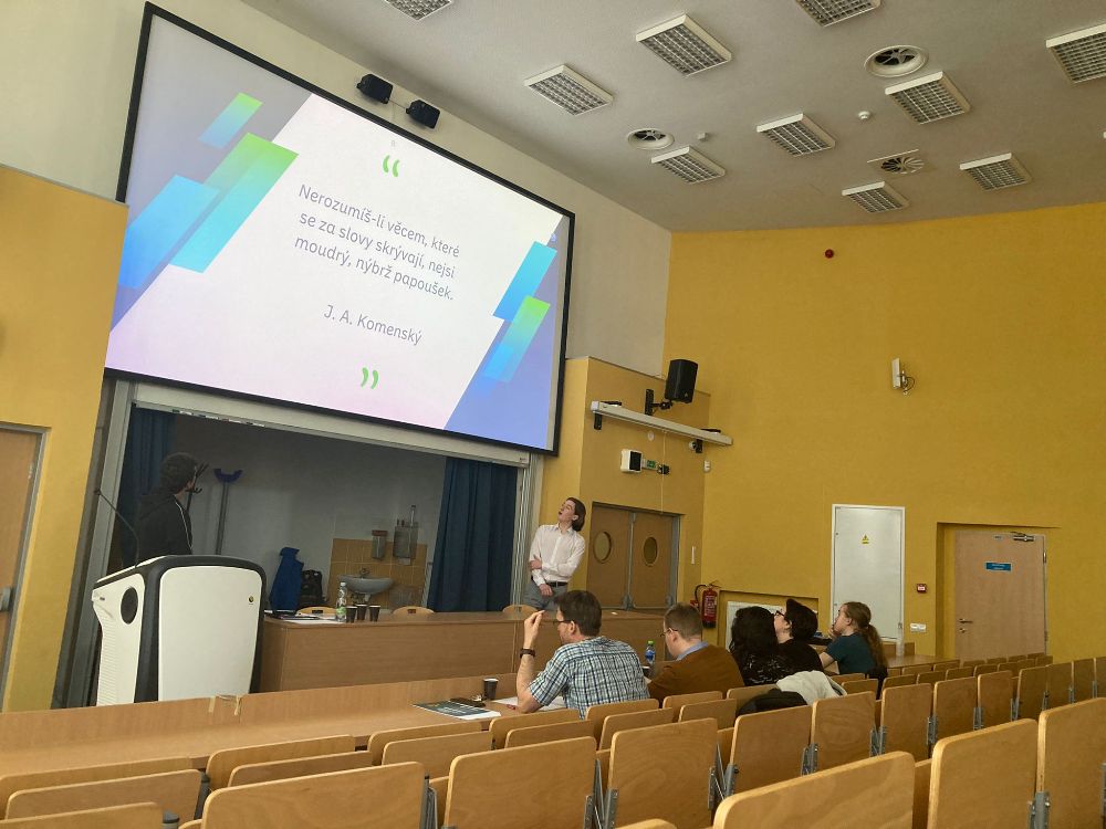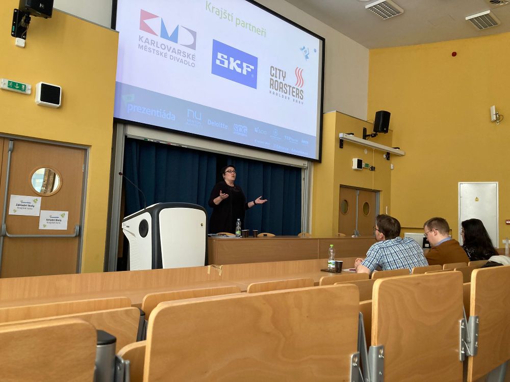 Atmosféru odlehčil tým z Kraslic Vikča a Tobík. Ve své prezentaci nám prozradili, čím tráví své přestávky. K překvapení vůbec nikoho byla většina aktivit v rozporu se školním řádem. Oba členové týmu nás ale ujistili, že se žádných takových aktivit sami rozhodně neúčastní.