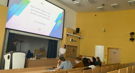 Poslední tým, nečekaně bez jednoho člena, se nám představil jako Vrstevníci J. A. Komenského, přestože slečny vypadaly o pár let mladší. V prezentaci probraly problémy všech stupňů škol, kterými prošly. Poukázaly na nedostatek koníčků v mateřských školkách a nebály se naťuknout i osobní zkušenosti se šikanou na základkách.