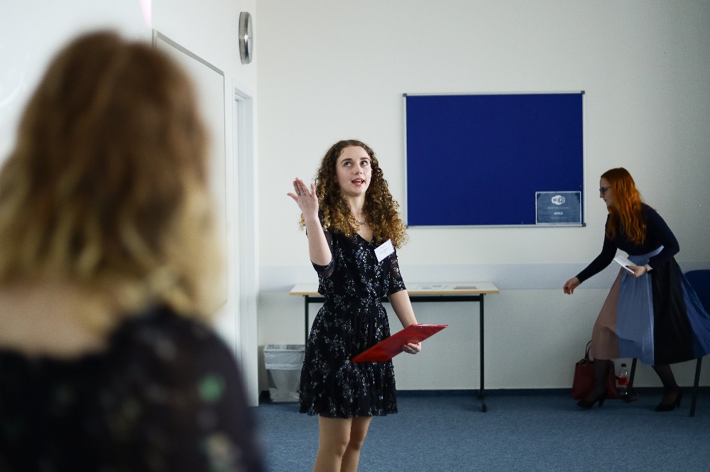 Další v pořadí byl tým Interes, který se zaměřil na to, jak nás ovlivňuje naše okolí. V prvé řadě je to rodina – například jméno, které nám dají rodiče, nás doprovází většinou celý život a nemůžeme ho jednoduše změnit. Často sdílíme názory se svými přáteli, kteří nás tímto způsobem ovlivňují. Internet v tomto ohledu přináší mnoho pozitiv, ale také řadu negativ. Šikana, rasismus, body shaming, králičí nory. Je toho spousta. Interes dokonce uspořádali vlastní dotazník mezi spolužáky na škole o body shamingu. Překvapivé je, že až čtvrtina respondentů uvedla, že nikdy nehodnotila něčí postavu. A závěrečná myšlenka? Když nemůžeme říct něco hezkého, neříkejme raději nic. Z odpovědí na dotazy poroty vyplynulo, že při hodnocení lidí bychom měli kombinovat pozitivní s konstruktivním.
