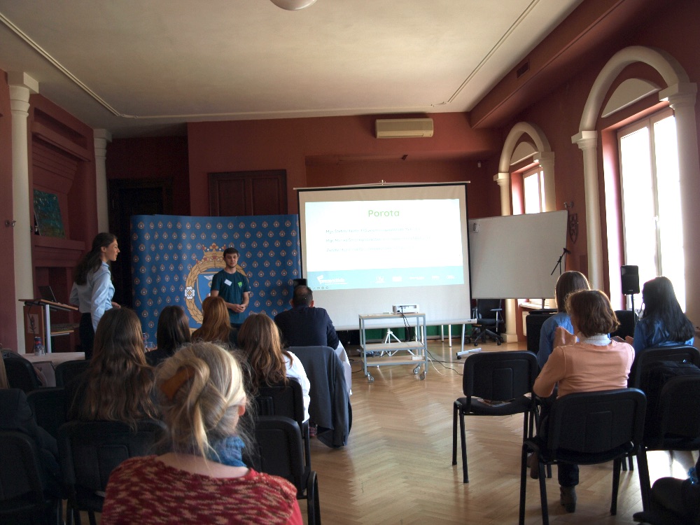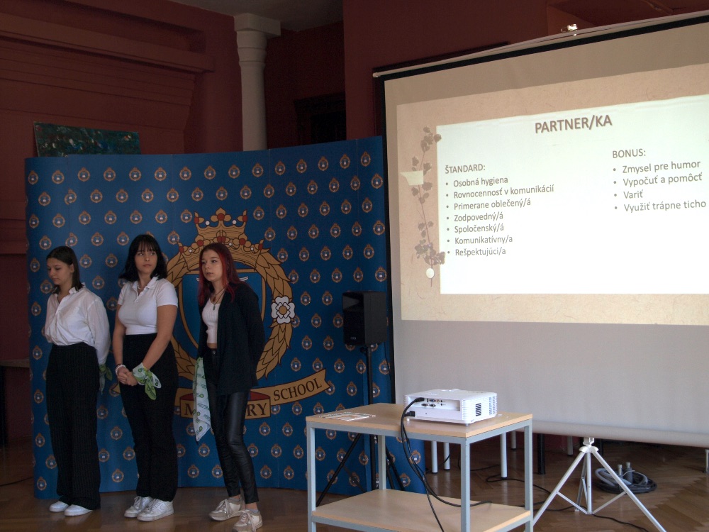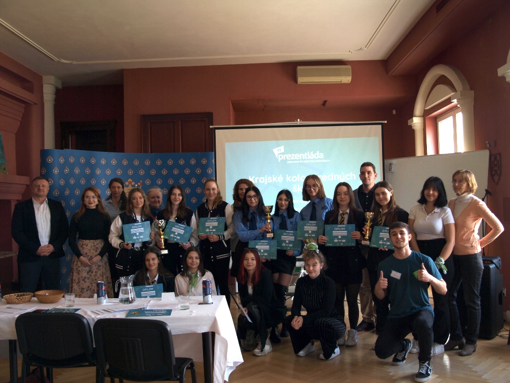Po úvodnej prezentácii prišiel na rad prvý tím Novučký svet. Presvedčili nás o tom, že vždy sa dá nájsť kompromis, a že metóda win-win je najefektívnejšia. Hneď po nich následovala zmena témy a to k tímu 3 parádnice, ktoré nám dali typy a triky čo robiť a čo nerobiť na prvom rande. V tejto téme nás udržal aj tím Heckerky, ktoré nám ukázali aj to, kam napríklad môžeme zobrať niekoho na prvé rande. Krajské kolo nám krásne zakončil tím Ochrankári, ktorý sa s nami chcel zhodnúť na tom, že hudba je pre nás dôležitá, no niekedy aj škodlivá. Následovala dlhšia, no za to príjemná prestávka, kde sme spoločne s porotou mohli prejsť tímy po poradí a nájsť a na grandfinále poslať ten najlepší. Tím Novučký svet vyhral toto krajské kolo na plnej čiare! Aj napriek malému kolu sme mali možnosť si vypočuť obidve témy stredoškolských prezentácii a zažiť pestrosť prejavov.
