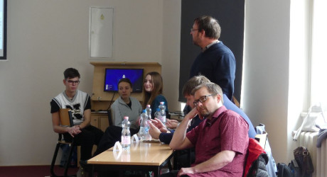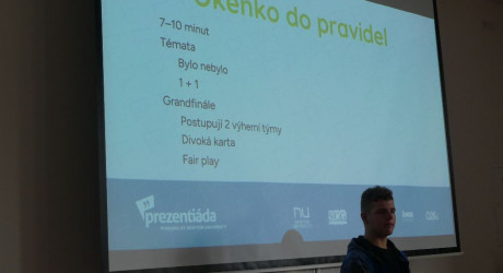 Na začátku nebylo nic a pak přišel velký třesk. Moderátorovi spadla židle při stěhovaní stolu. Do místnosti přišli první účastníci Prezentiády pro základní školy v Hradci Králové na Gymnáziu J.K. Tyla.
