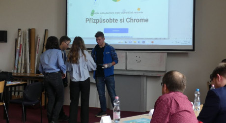 Na krásném šestém místě se umístili holky, které jsou stále na drátě, Wifiňačky. Se svojí prezentací o společnosti Microsoft asi nejvíce zaujaly porotce Mgr. Michala Dočekala.