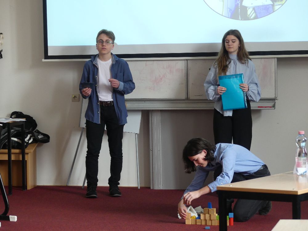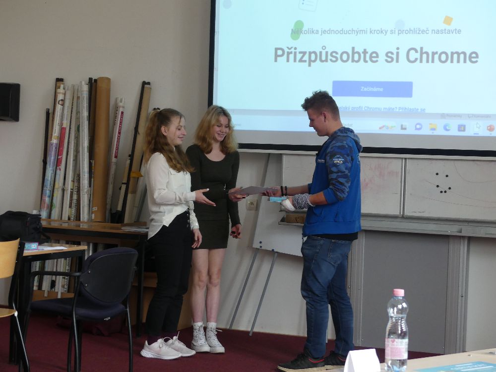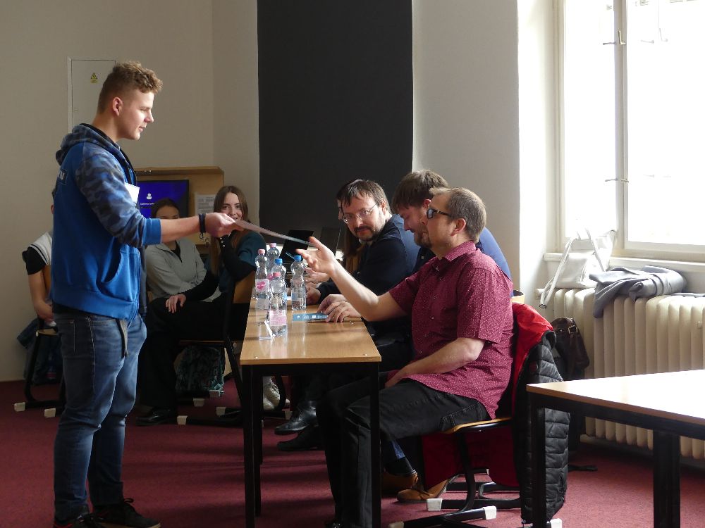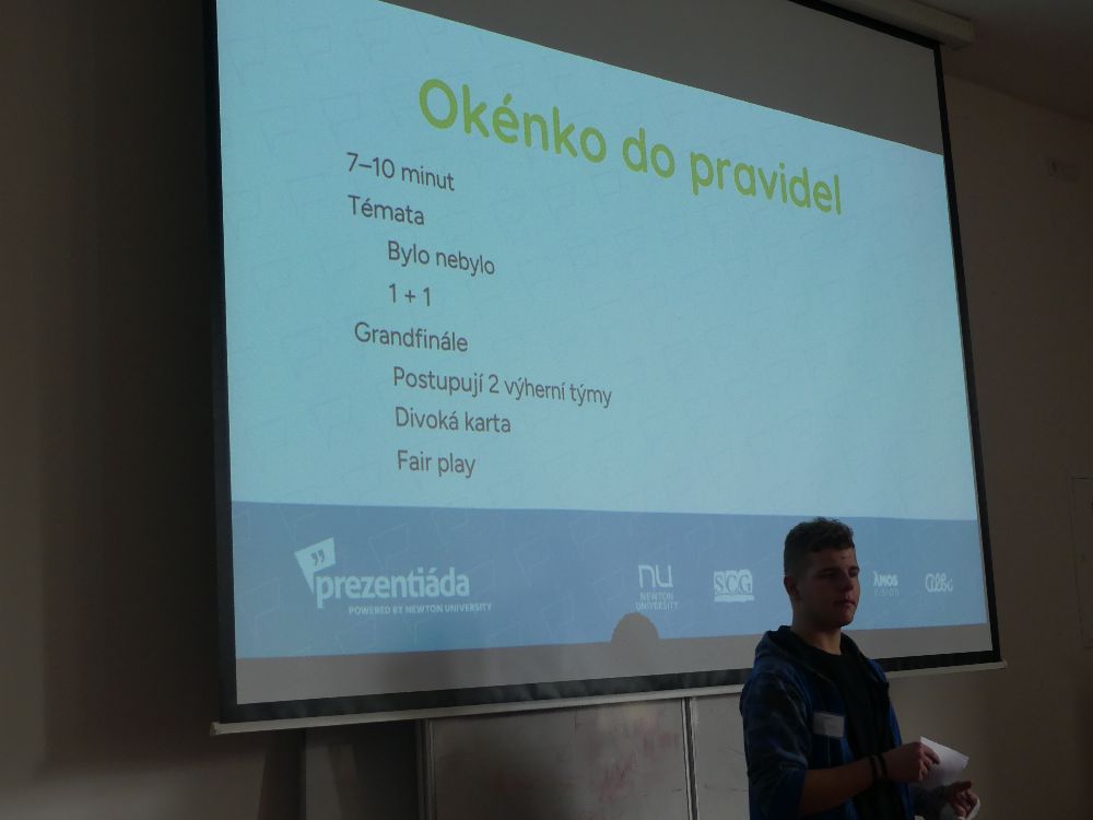 Již postupové druhé místo patří týmu Kukleňáčci, kteří porotu dostali svým sebevědomým vystoupením. A nakonec, k velkolepému prvnímu místu si protuneloval cestu tým TUNEL. Jejich prezentace o modelingu nám ukázala příkoří tohoto odvětví, a byla tak nejen zajímavá a poučná, ale vedla i řadu posluchačů k zamyšlení se nad dnešní společností.