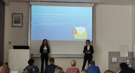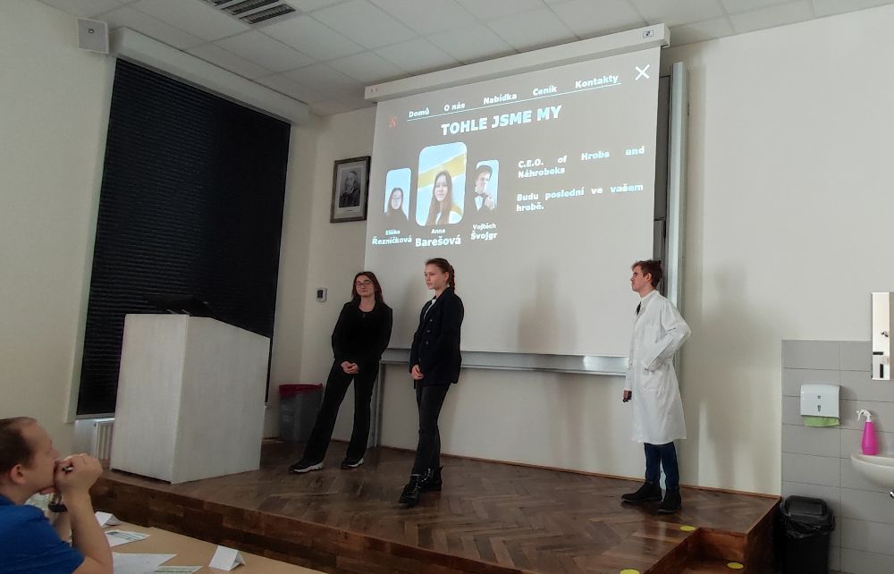 Těsně před přestávkou nás tým Osmičky představil své webové stránky na revoluční zajišťování pohřbů.