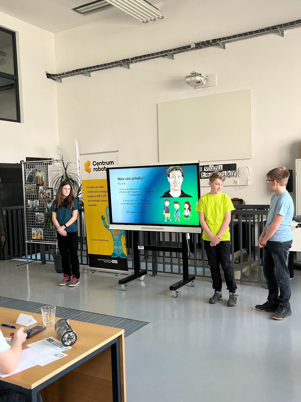 Dne 22. 3. 2023 se Centrum robotiky v Plzni naplnilo žáky, kteří tvořili týmy, trojice, ve kterých měli připravené prezentace na témata 1+1 a Bylo nebylo. Na jedno z těchto dvou témat každá trojice zpracovala prezentaci libovolnou formou a stylem výkladu. Jak se s tím žáci poprali? Jaké zkušenosti si odnesou do budoucna? Na konci dne bylo porotou určeno pořadí na stupních vítězů. Na třetím místě se umístil tým Jedničky, na druhém místě tým 3v1 a první příčku obsadil tým Mrňousci. První dva týmy postupují na Grandfinále do Prahy, kde využijí svoje už vypilované schopnosti!