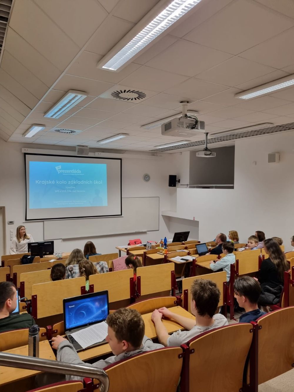 Dne 23. 3. jsme se potkali na krajském kole Prezentiády, tentokrát v kraji Vysočina. Sešli jsme se na VOŠ a SPŠ ve Žďáře nad Sázavou, kde se potkalo 10 týmů! Konkrétně se jednalo o kategorii ZŠ a jako vždycky se potkali jak nejmenší žáci, tak i starší deváťáci. Konkurence byla veliká, o to bylo letošní kolo více zajímavé.