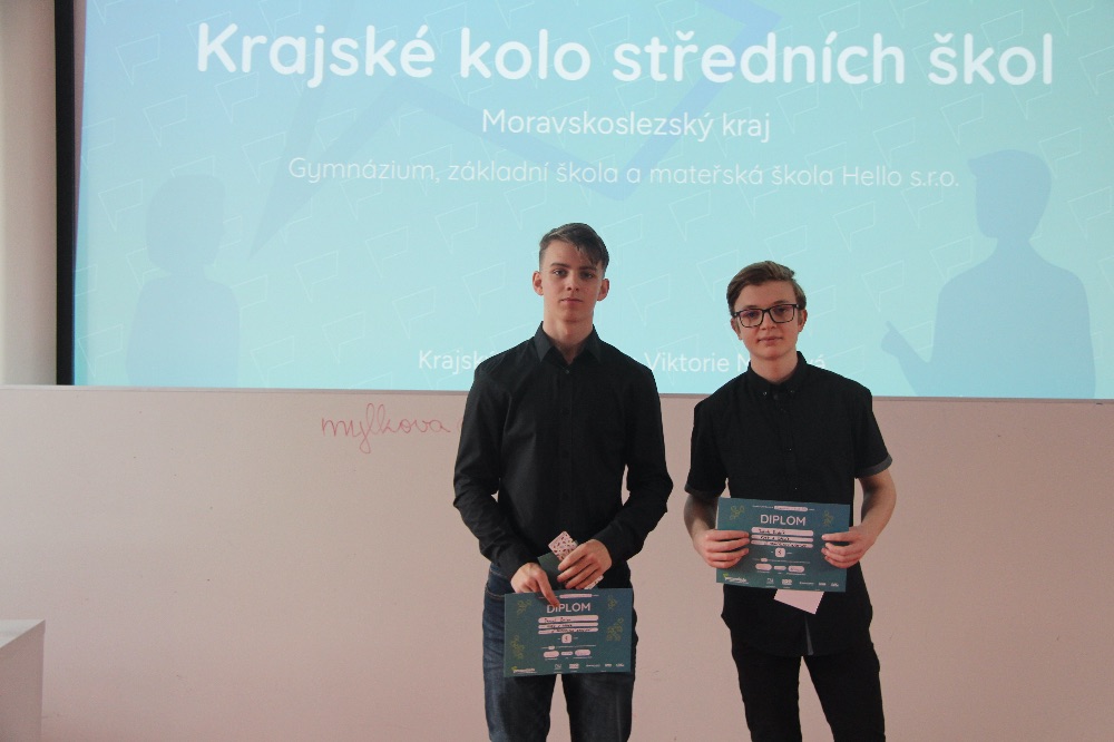 2. místo Zlaté tiskárny (Jazyk.a hum. GYMNÁZIUM PRIGO, s.r.o., Ostrava) ve složení: Tomáš Peršák, Jáchym Cviček
