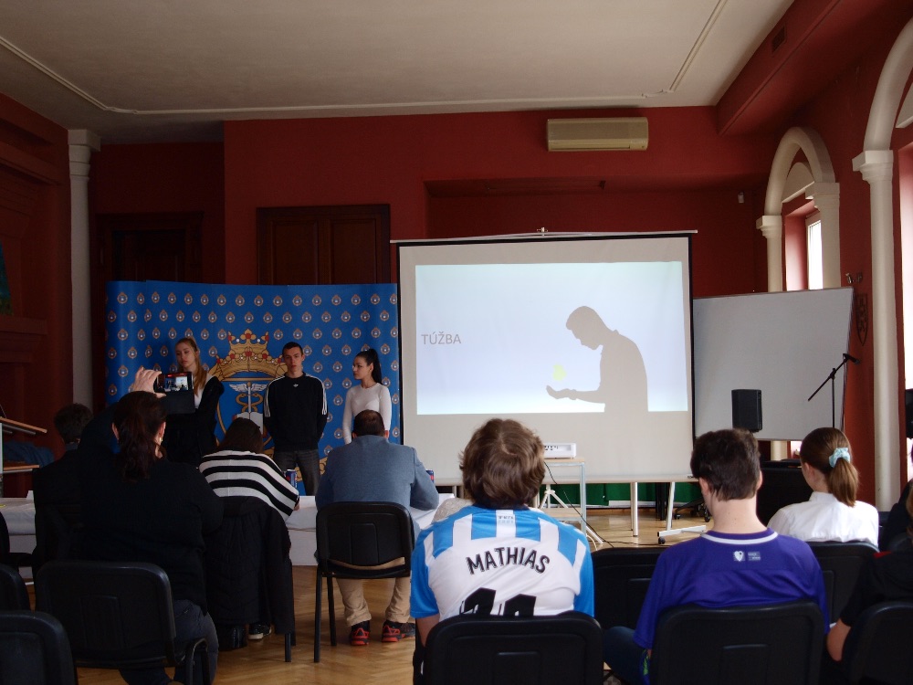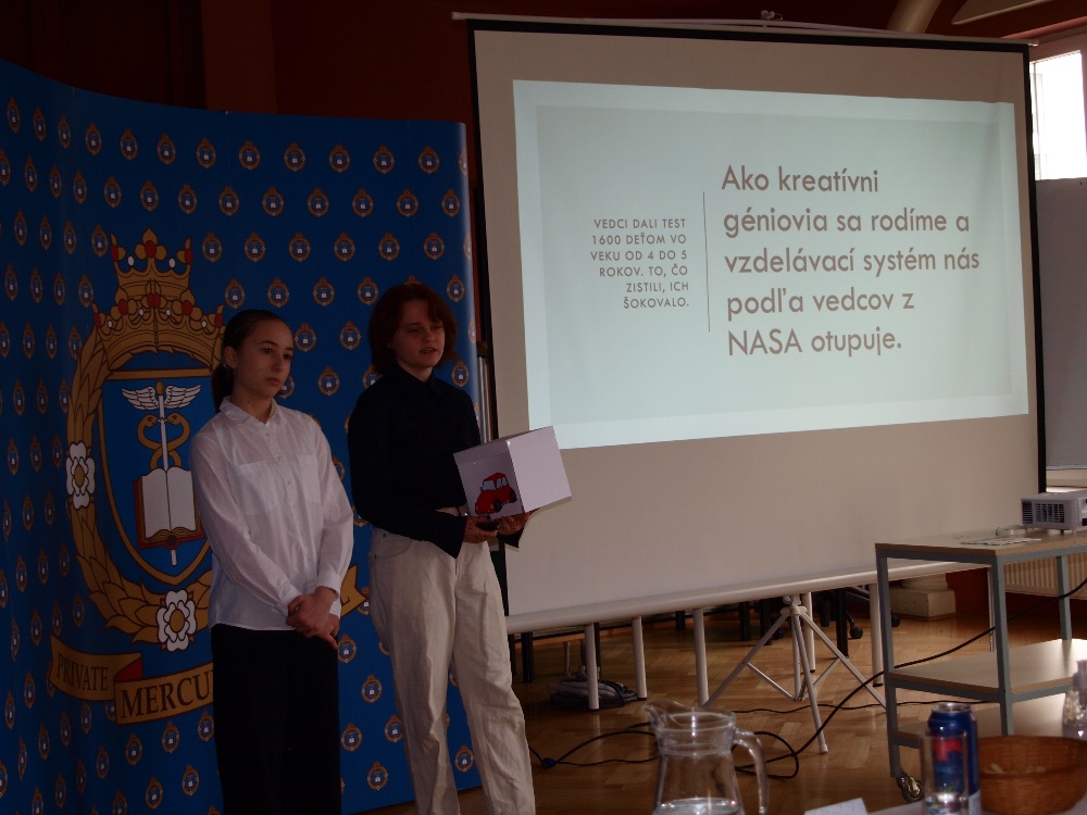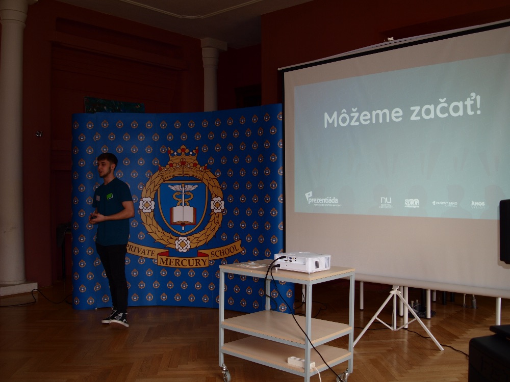 Krajské kolo 21.3. na Súkromnom gymnáziu Mercury začalo ako obvykle úvodnou prezentáciou. Ešte pred tým sme sa však privítali s porotou. Čakalo nás 6 úžasných prezentácii no postúpi však iba jedna s jedným tímom.