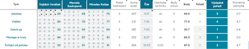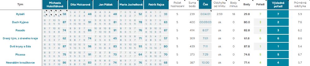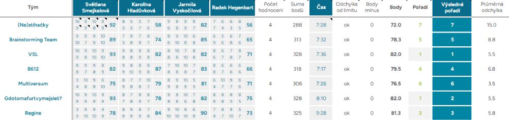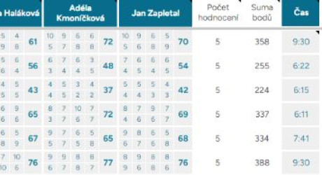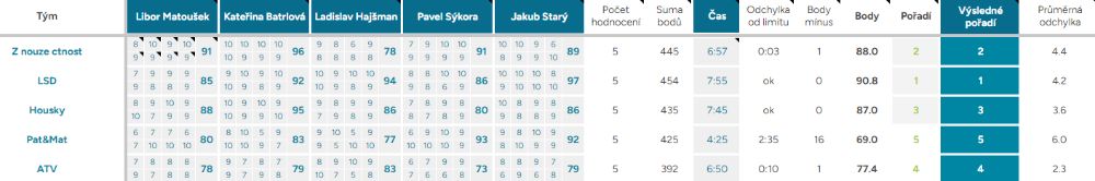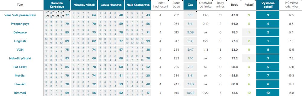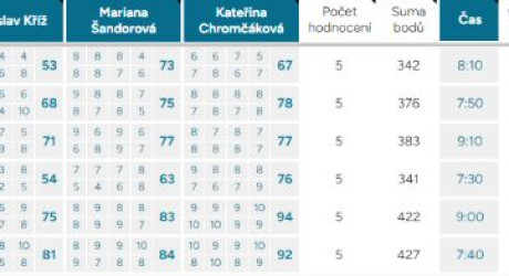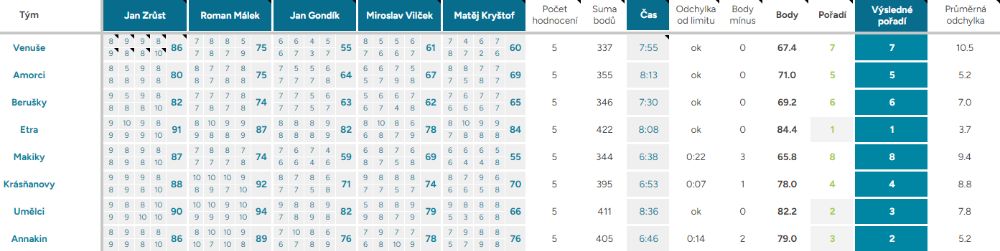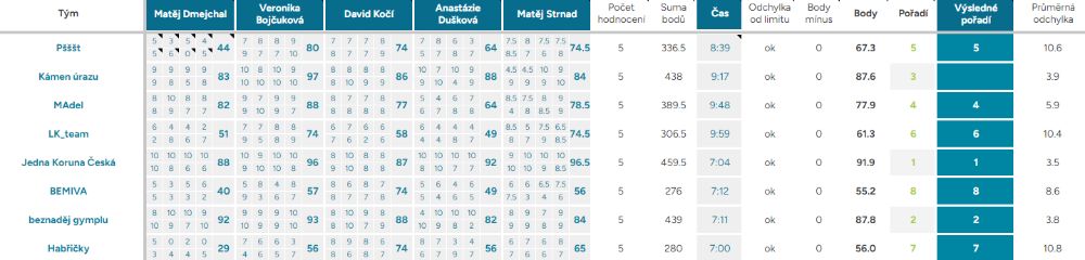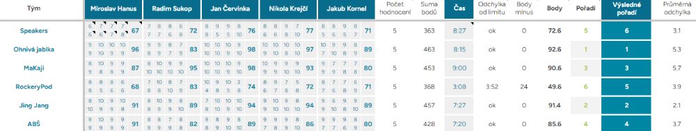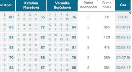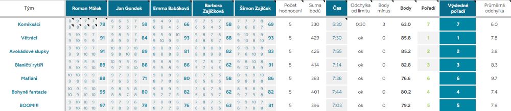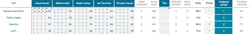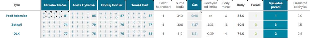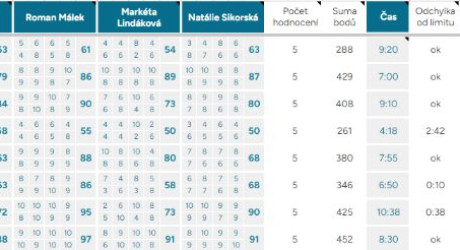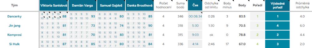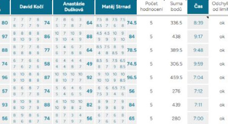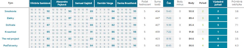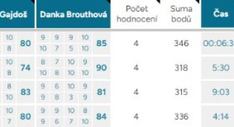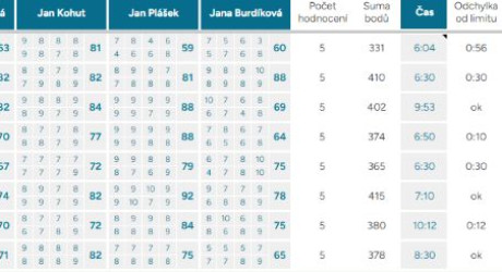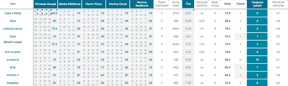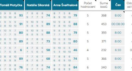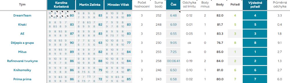 Průměrná odchylka – Vyjadřuje shodovitost mezi porotci – čím vyšší číslo, tím více se na hodnocení neshodli