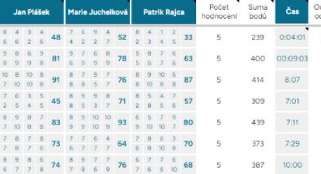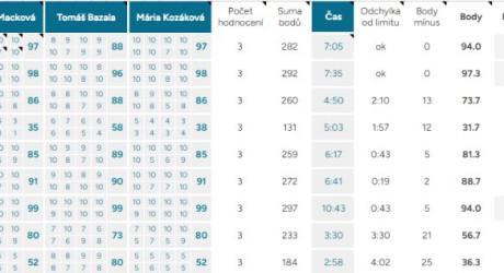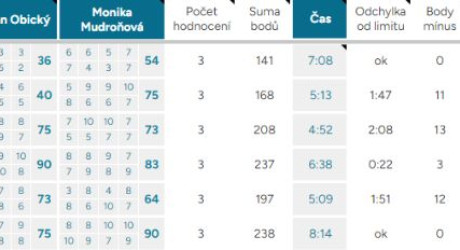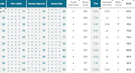 Body mínus – odečítáme celý bod za každých započatých 10 vteřin mimo čas. limit 7 – 10 minut