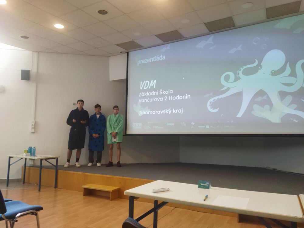 Prezentace týmu VESELÁ TROJKA byla odprezentována s kreativitou. Jejich projekt nabídl zajímavé pohledy a nové myšlenky.