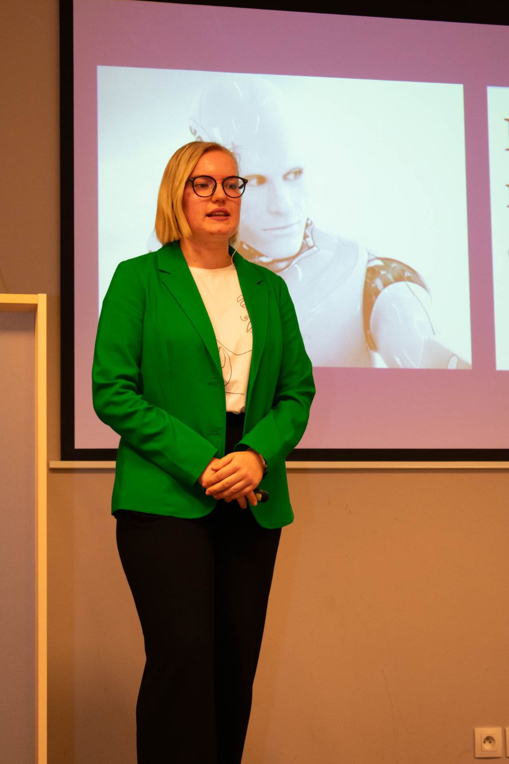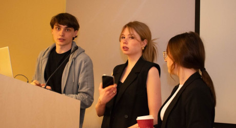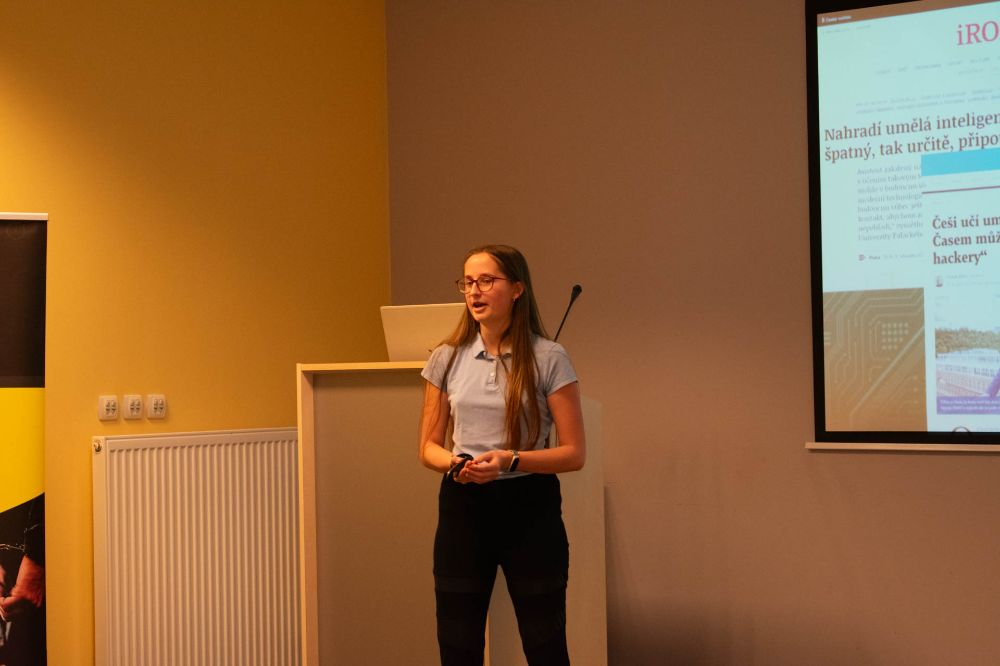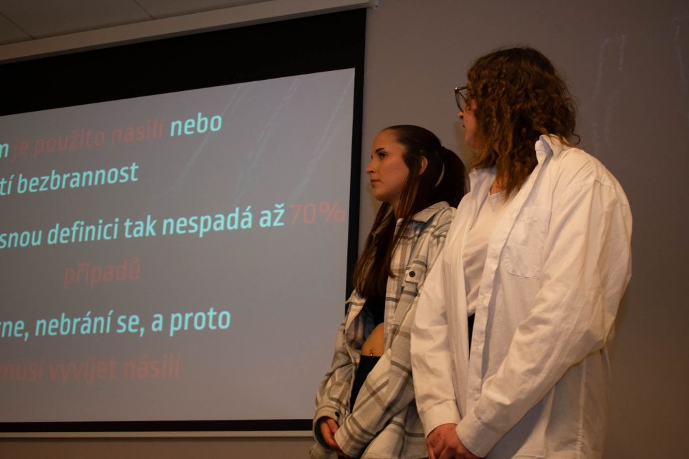 Jste leklá ryba, nebo drtič? Různé možnosti v haptice nám i s ukázkami předvedly holky z týmu I&E. Poté jsme si na chvíli vyzkoušeli, jak to vypadá v takovém televizním vysílání, když nám sladěný tým Blondýnky na tripu (s jedním blonďákem…) předvedl svou sladěnou zpravodajskou prezentaci s novinkami ze světa AI. Z Kavčích hor jsme se vrátili zpět do reality, a to k závažnému tématu znásilnění – slečny z týmu Všichni za jednoho se soustředily na otázky stigmatizace obětí nebo na problematiku nedostatečného odsouzení pachatelů. Vše jsme si samozřejmě ukázali na reálných datech.