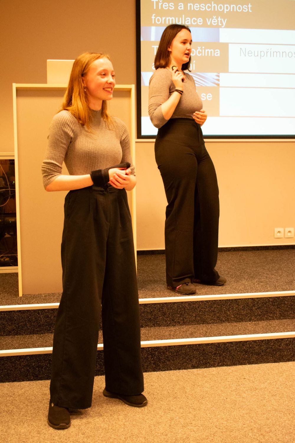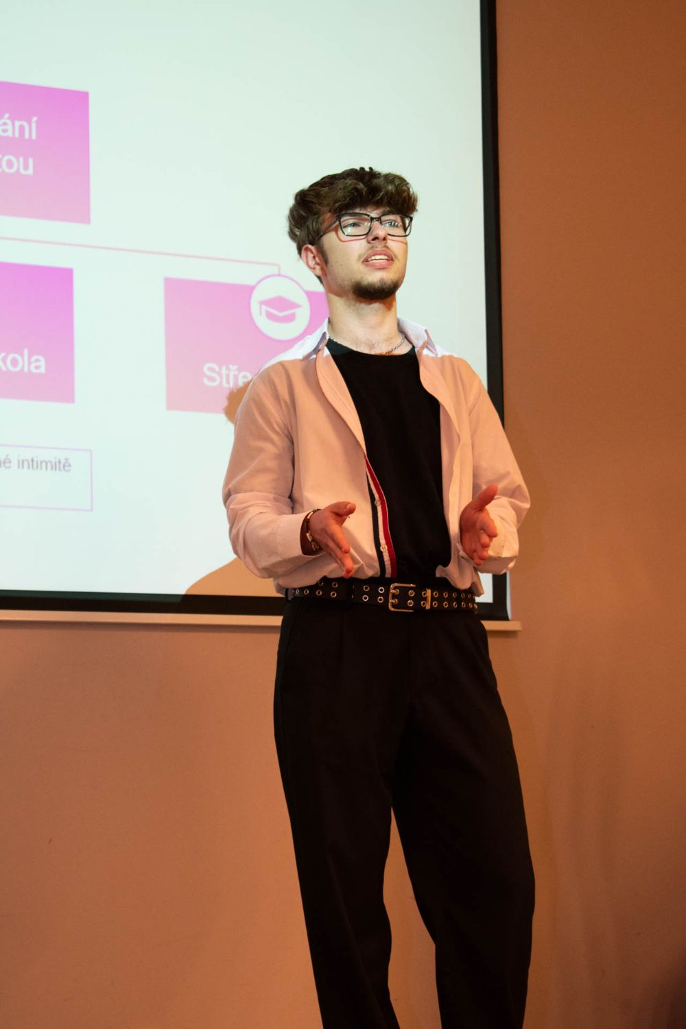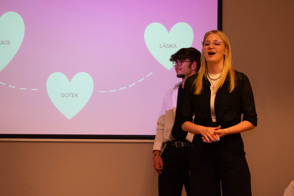 Věděli jste, že tomu, kdo lže, často bliká oko? Po přestávce pokračoval tým Růžové brýle. Holky z konkurenčního gymnázia si položily základní otázku: jak číst v lidech? A přesně na to se ve svojí prezentaci zaměřily. Holky z pořadatelské školy a týmu Mozarťačky nás hned na začátku prezentace překvapily dotazem, jestli jsme už měli sex. A v podobném duchu pak pokračovala celá prezentace – tématem byla tabu v průběhu historie. Soutěžící i na místě facilitovaly menší průzkum ohledně těch nejžhavějších tabu. Další tým, Pumprdlíci, se pro změnu věnoval tématu (ne)možné. Soutěžící nás vzali na cestu kolem světa a na každé zastávce se zamysleli, co je v dané zemi možné a nemožné. No co byste tipli, jaké byly rozdíly mezi Severní Koreou, Indií, nebo USA? Pak přišel šok. Tým Paraplata na příběhu odvyprávěl, jak se může lidský život v jedné vteřině změnit, a edukovali publikum o tom, že z každého z nás se kdykoliv může stát vozíčkář. Tým „Není to jedno" ukončil celý prezentační blok dalším zamyšlením o intimitě. Protože sex přece není jediná intimnost.