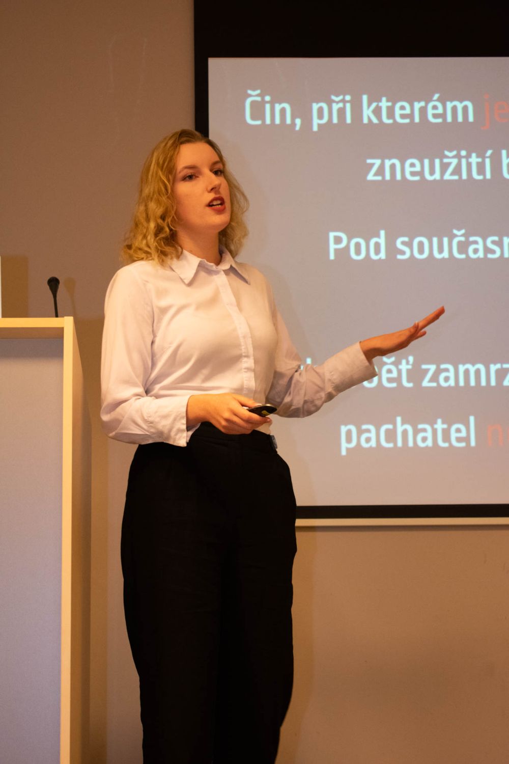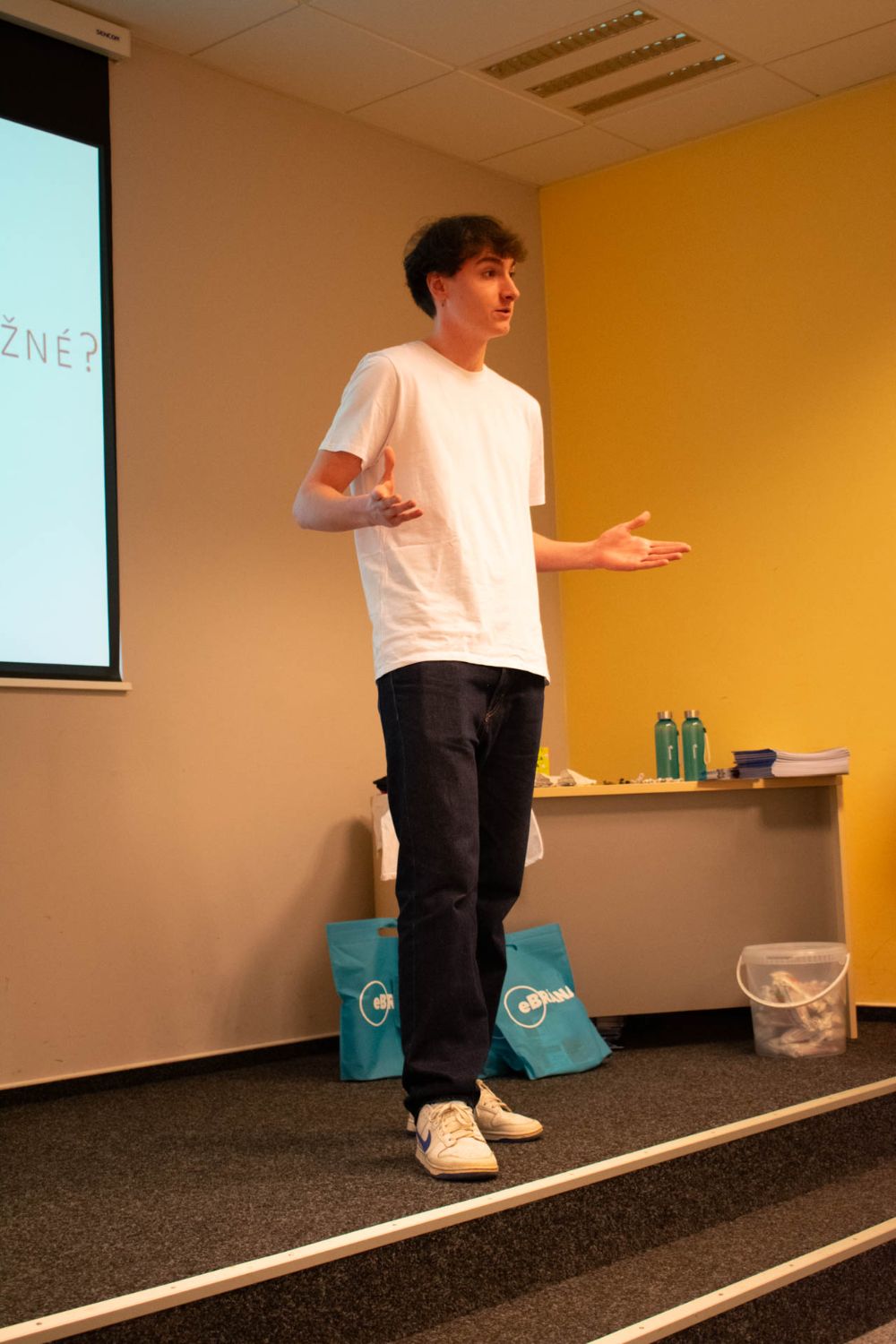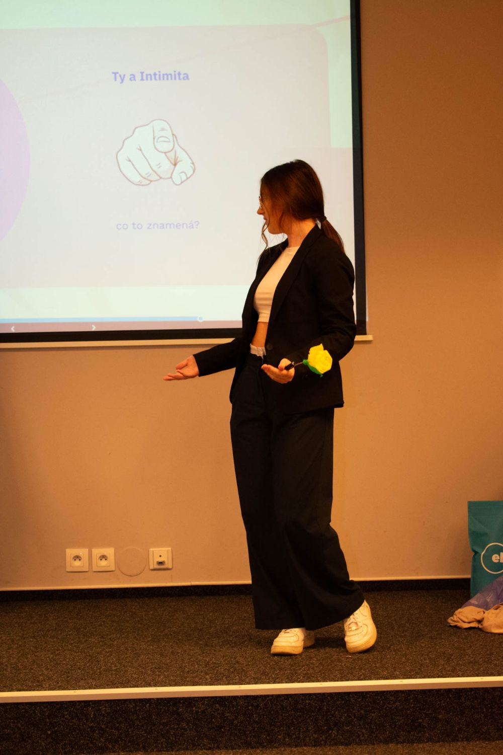 Věděli jste, že tomu, kdo lže, často bliká oko? Po přestávce pokračoval tým Růžové brýle. Holky z konkurenčního gymnázia si položily základní otázku: jak číst v lidech? A přesně na to se ve svojí prezentaci zaměřily. Holky z pořadatelské školy a týmu Mozarťačky nás hned na začátku prezentace překvapily dotazem, jestli jsme už měli sex. A v podobném duchu pak pokračovala celá prezentace – tématem byla tabu v průběhu historie. Soutěžící i na místě facilitovaly menší průzkum ohledně těch nejžhavějších tabu. Další tým, Pumprdlíci, se pro změnu věnoval tématu (ne)možné. Soutěžící nás vzali na cestu kolem světa a na každé zastávce se zamysleli, co je v dané zemi možné a nemožné. No co byste tipli, jaké byly rozdíly mezi Severní Koreou, Indií, nebo USA? Pak přišel šok. Tým Paraplata na příběhu odvyprávěl, jak se může lidský život v jedné vteřině změnit, a edukovali publikum o tom, že z každého z nás se kdykoliv může stát vozíčkář. Tým „Není to jedno" ukončil celý prezentační blok dalším zamyšlením o intimitě. Protože sex přece není jediná intimnost.
