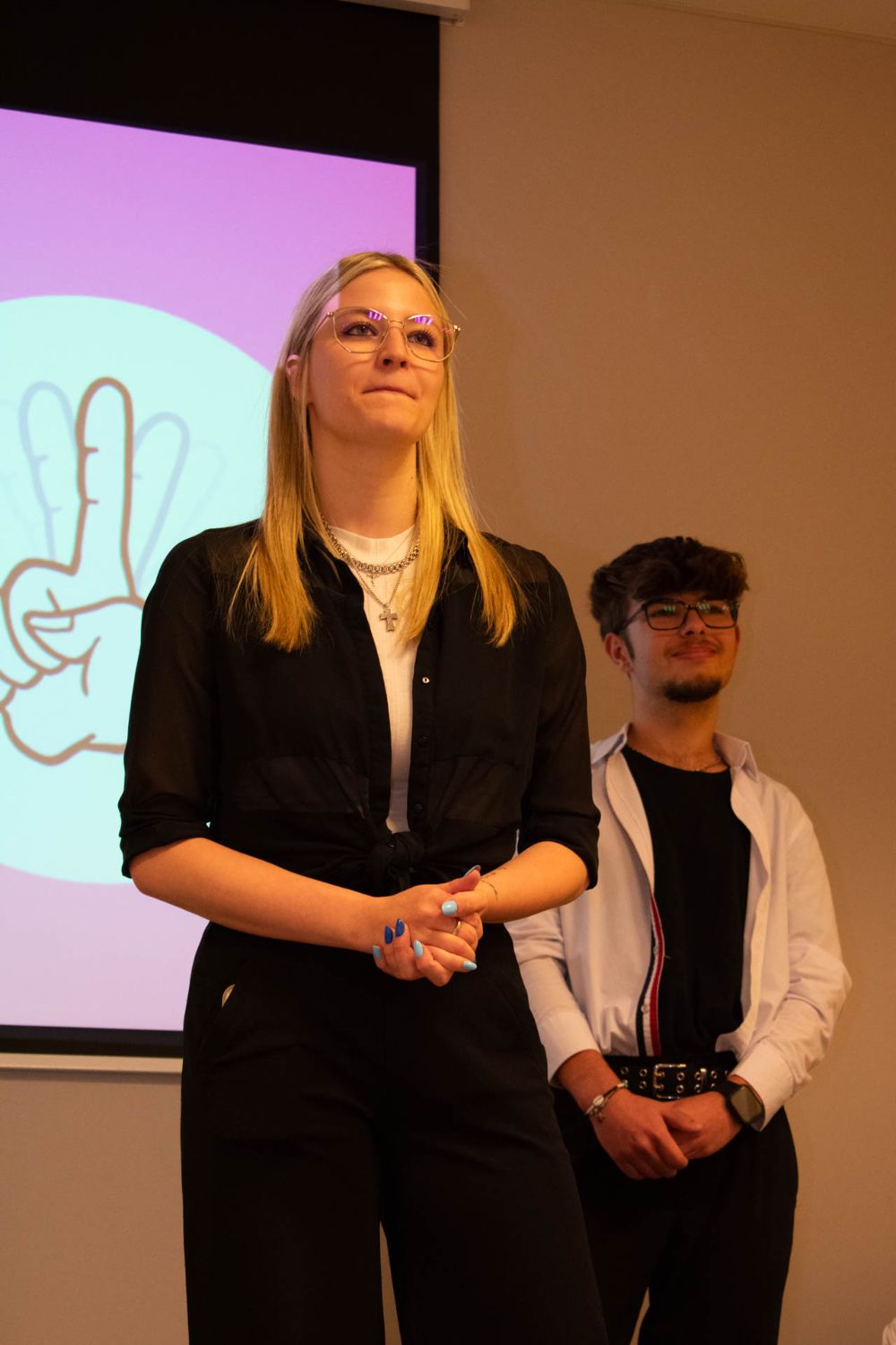Prvním vylosovaným týmem byl NeURaLiNK. Tým otevřel aktuálním trendy tématem umělé inteligence, a soutěžící se zamysleli, zda nás AI v nejbližší době nevyhubí. Holky z následujícího týmu Nejsi sám, si vybraly závažné téma sebepoškozování a kvitovaly především důležitost osvěty a podpory, kterou můžeme ostatním poskytnout. Tým NKM se zamyslel nad tím, s kým se bavíme o našich intimnostech – tady si většina dotázaných vzpomněla na své maminky.