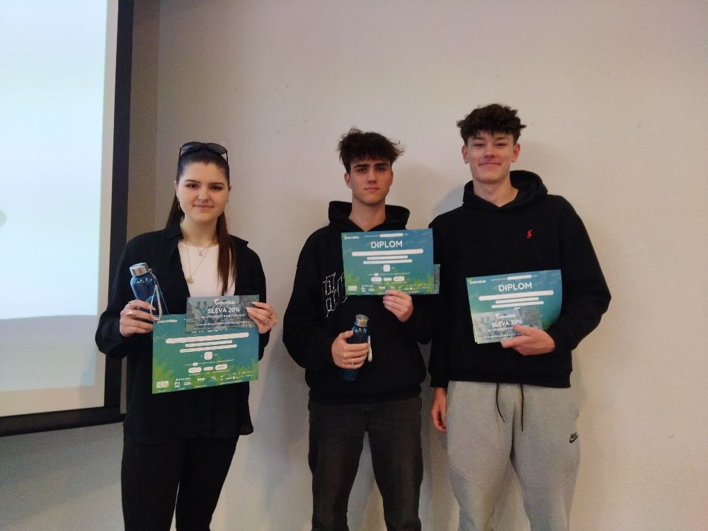 2. místo Rekorďáci (OA, SOŠ knihovnická a VOŠ, Brno) ve složení: Martina Skulínková, Vojtěch Zahradník, Jan Svoboda
